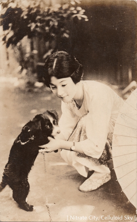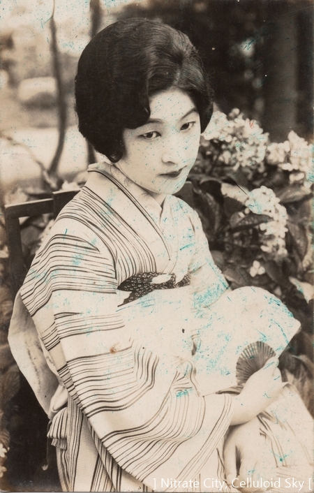 大正十年松竹キネマに入社してから、あの淋しい悲劇的の顔の表情が見物に受けて、メキメキと映画界の人氣者となつたが、しかし、映画女優としての彼女の天才は松竹に入つてから偶然に表れたのではなく、映画女優としての演技派疾の昔から経験があつたのである。即ち、銀座の吉澤商会の目黒撮影所と、新宿のエム・パテーの撮影所に於て活躍しお伽芝居の『桃太郎』を上州玉川畔で寫し、社会劇『海上王』を相州江の島で撮影し、その桃太郎と燈臺守の娘に扮したのが、抑々映画界に足を踏み込める第一歩となつたのである。