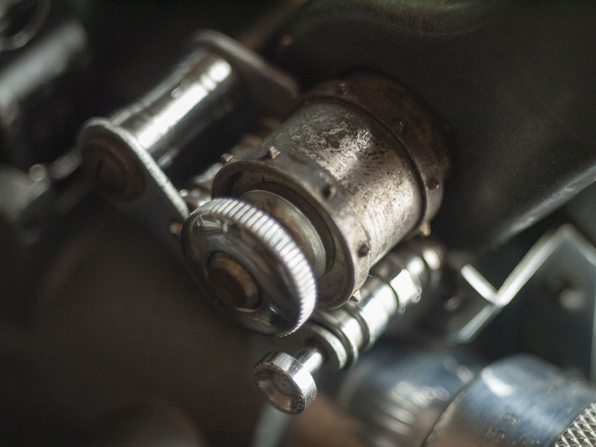 2014年にイギリスのセラーから購入。バーミンガムのシネ・エキップメンツ社が販売していた英国仕様の一台で、レンズが英ダルメイヤー製となっており、240/220Vから110Vにダウントランスする変圧器も付属していました。