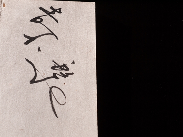 石井漠人脈の舞踏家として活動後、俳優に転職した青木繁さんの手によるサイン。現存作品が確認できていませんが『恋風襲来』『恋愛戦線異常なし』『近代奥様哲学』『家庭難船誌』など作品タイトルからでも軽めの喜劇を得意としていた様子は伝わってきます。