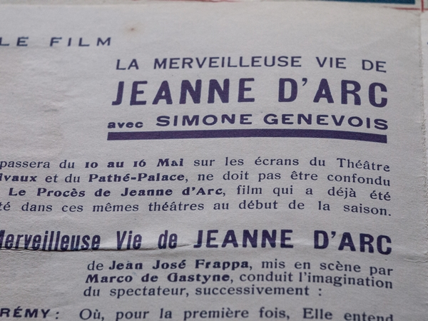 『ジャンヌ・ダルクの驚異の一生』 映写招待パンフレット(1929年、ベルギー)
