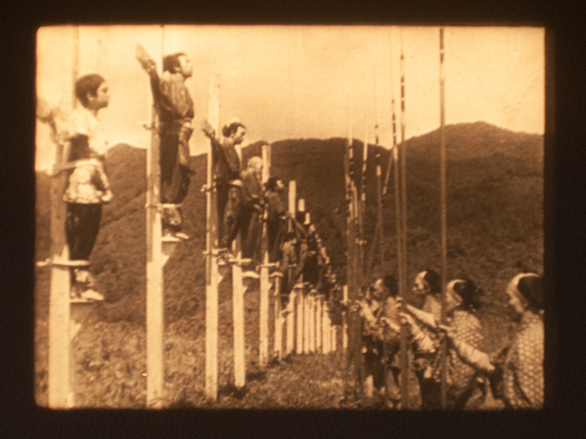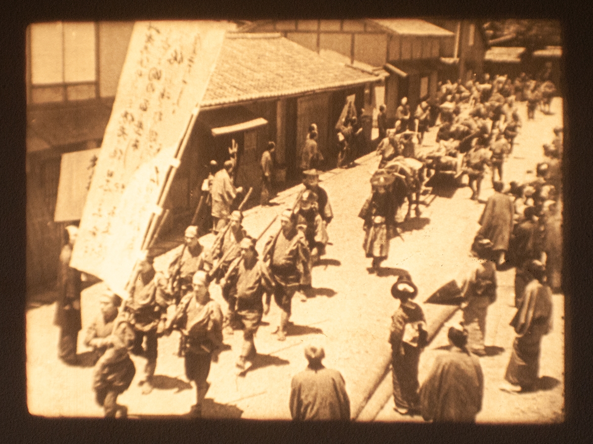 2) また本作からは日本無声映画の技法が成熟期に入っている様子も伝わってきます。『殉教血史 日本二十六聖人』の制作・公開された1930~31年は、欧米でカメラ移動の可能性が追及されていた時期でもあります。米キング・ヴィダー監督が映画史に残るクレーン撮影の長回しを披露した(『群衆』『街の風景』)のがこの時期でしたし、ドイツでは長尺で凝ったトラベリング撮影が好んで使用されていました(『令嬢エルゼ』『会議は踊る』)。