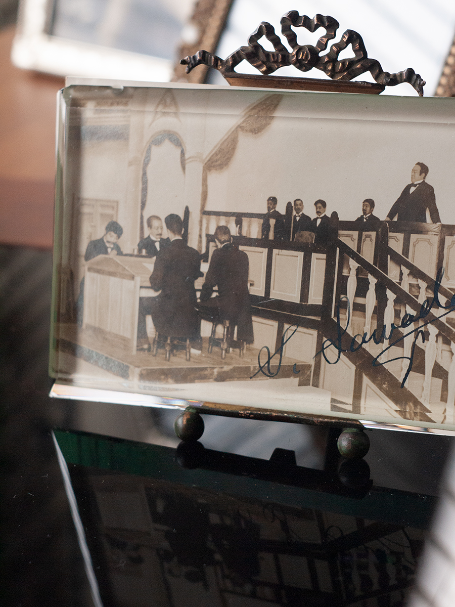 サインは英字で「S. Sawada」。裏に「帝劇 上方屋売店 壹階 2.8.20」のスタンプが押されています。
