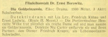 幼いころから女優に憧れ、15歳でベルリンの劇場の舞台に立ちます。俳優パウル・ハイデマンの勧誘で映画に参入、戦中の1916年、フランツ・ホーファーの軽喜劇の娘役として女優業のスタートを切りました。多数のホファー作品に出演を続ける傍ら、1917~18年にかけてエイコ映画社でミステリー作品にも挑戦し芸風と人気を広げていきます。