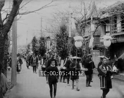 一つ目のタイトルは『絵のように美しい日本』と訳すことができそうです。旅行記風のドキュメンタリーで東京、大阪、奈良の風物を収録。長さは約9分、その5分33秒から7分40秒にかけ葬列が映し出されていきます。