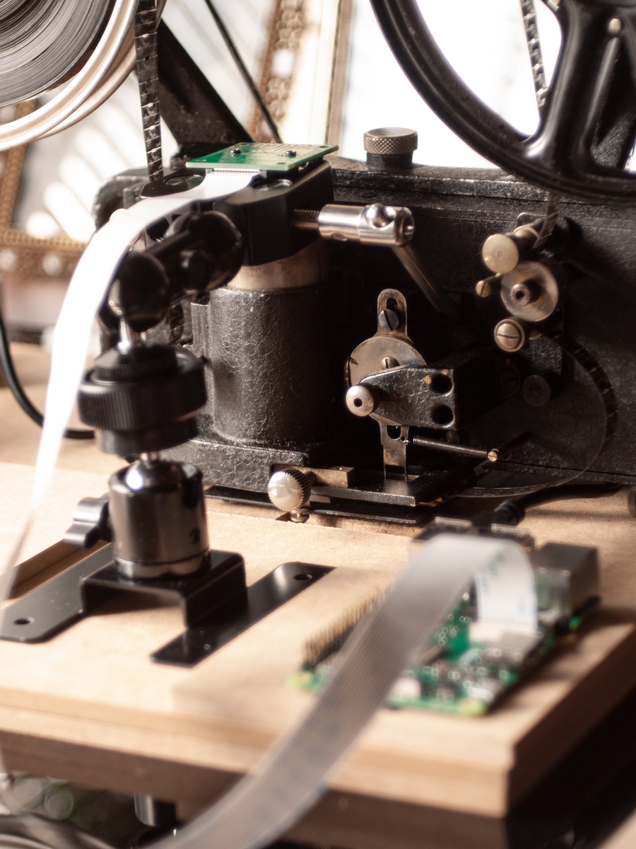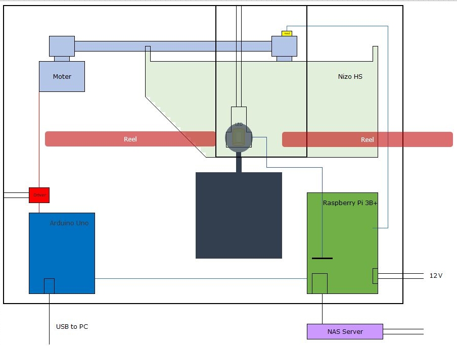 スキャナーの配置がまとまったのは8月最終週になってからでした。30×40センチの板を敷き、映写機にカメラ、ラズベリーパイ、arduino、モーターを置きながらイメージをまとめていきます。