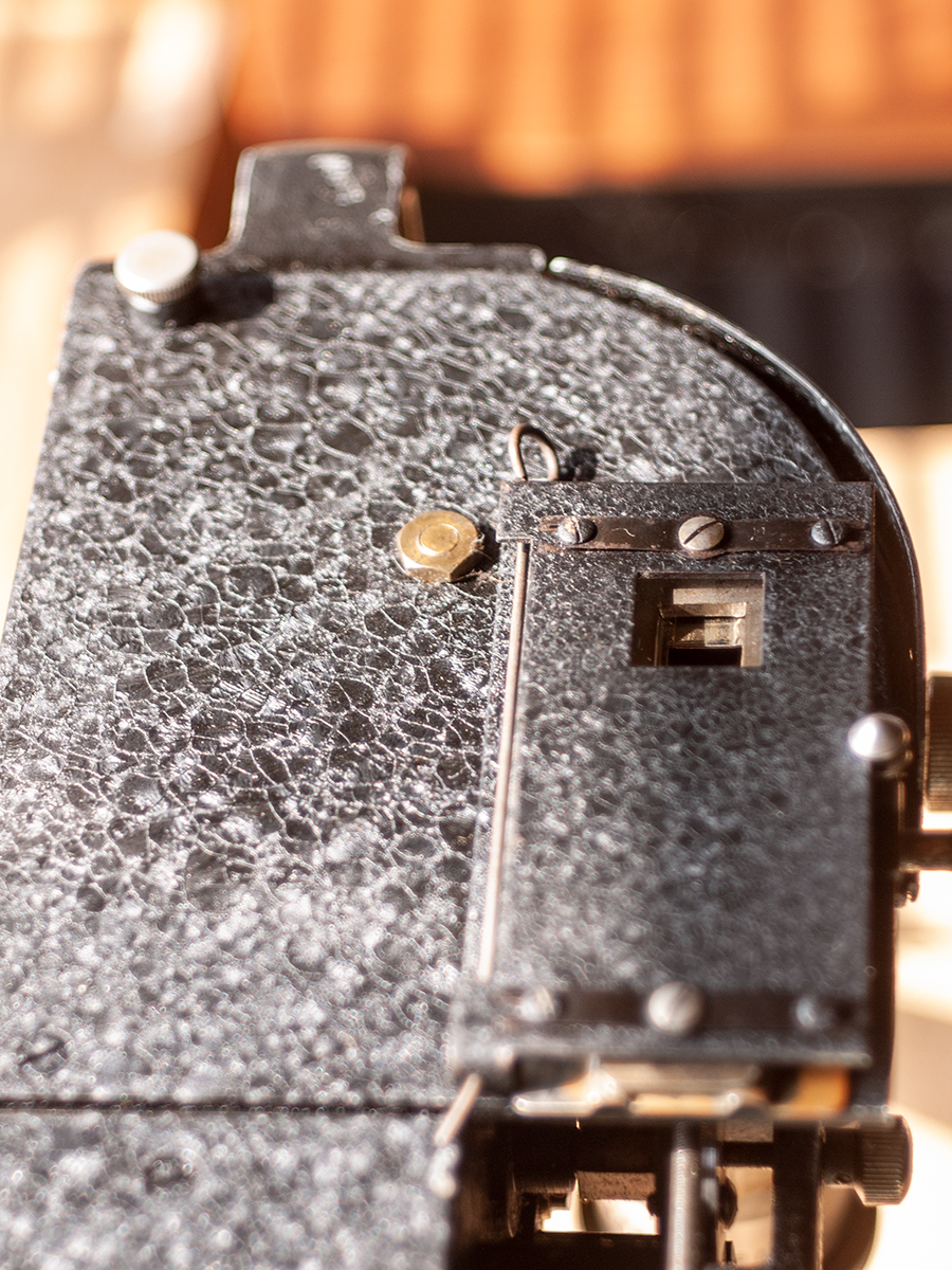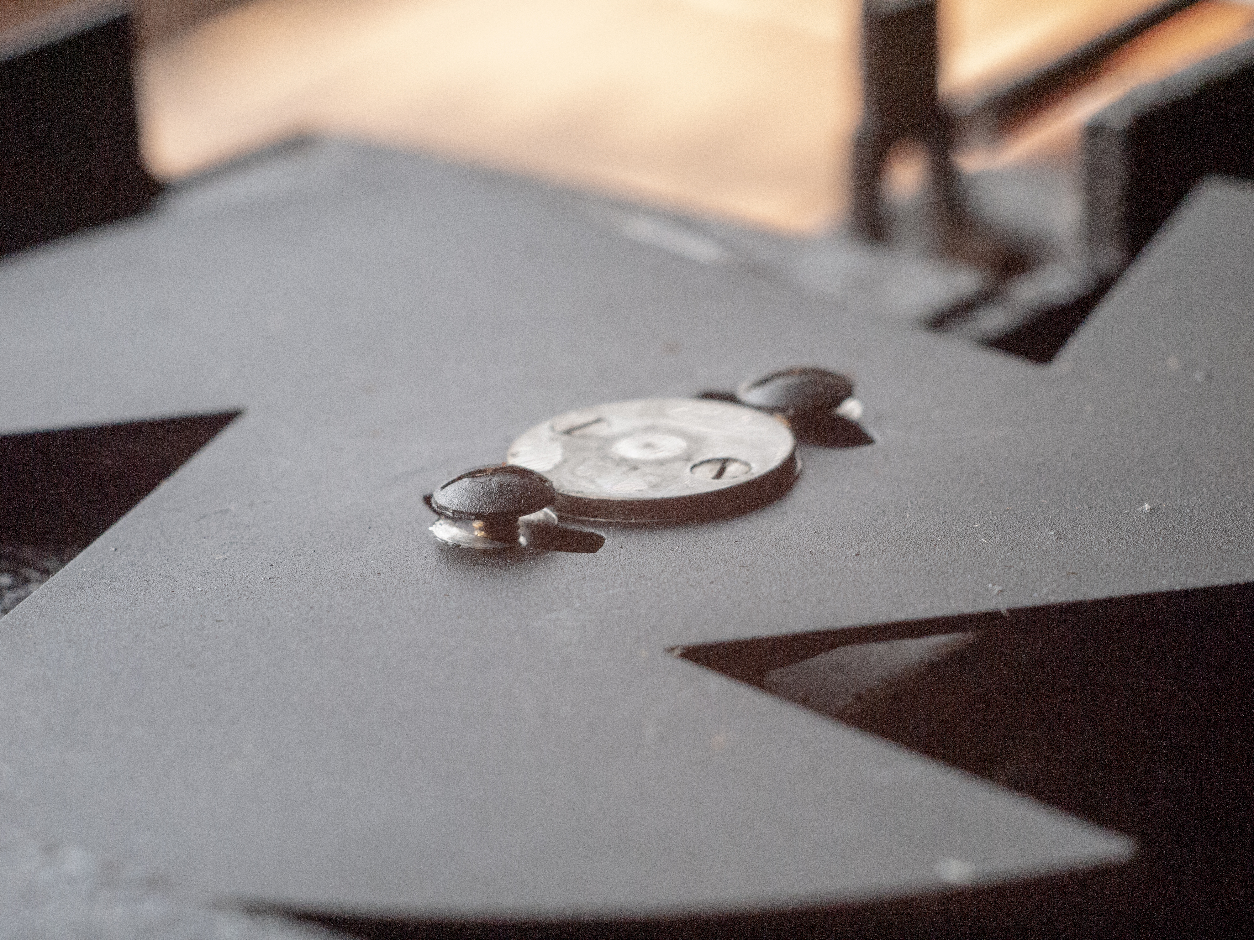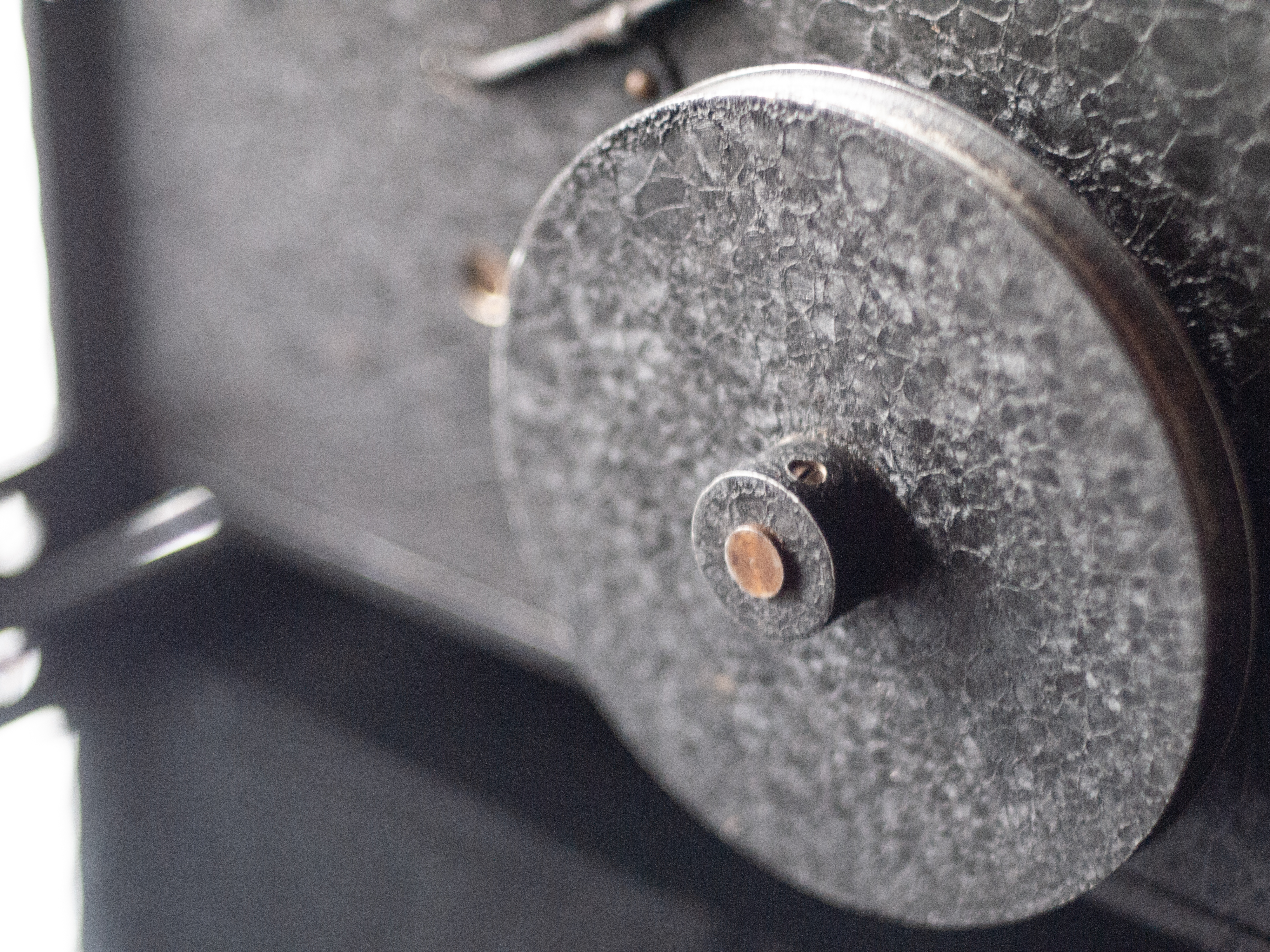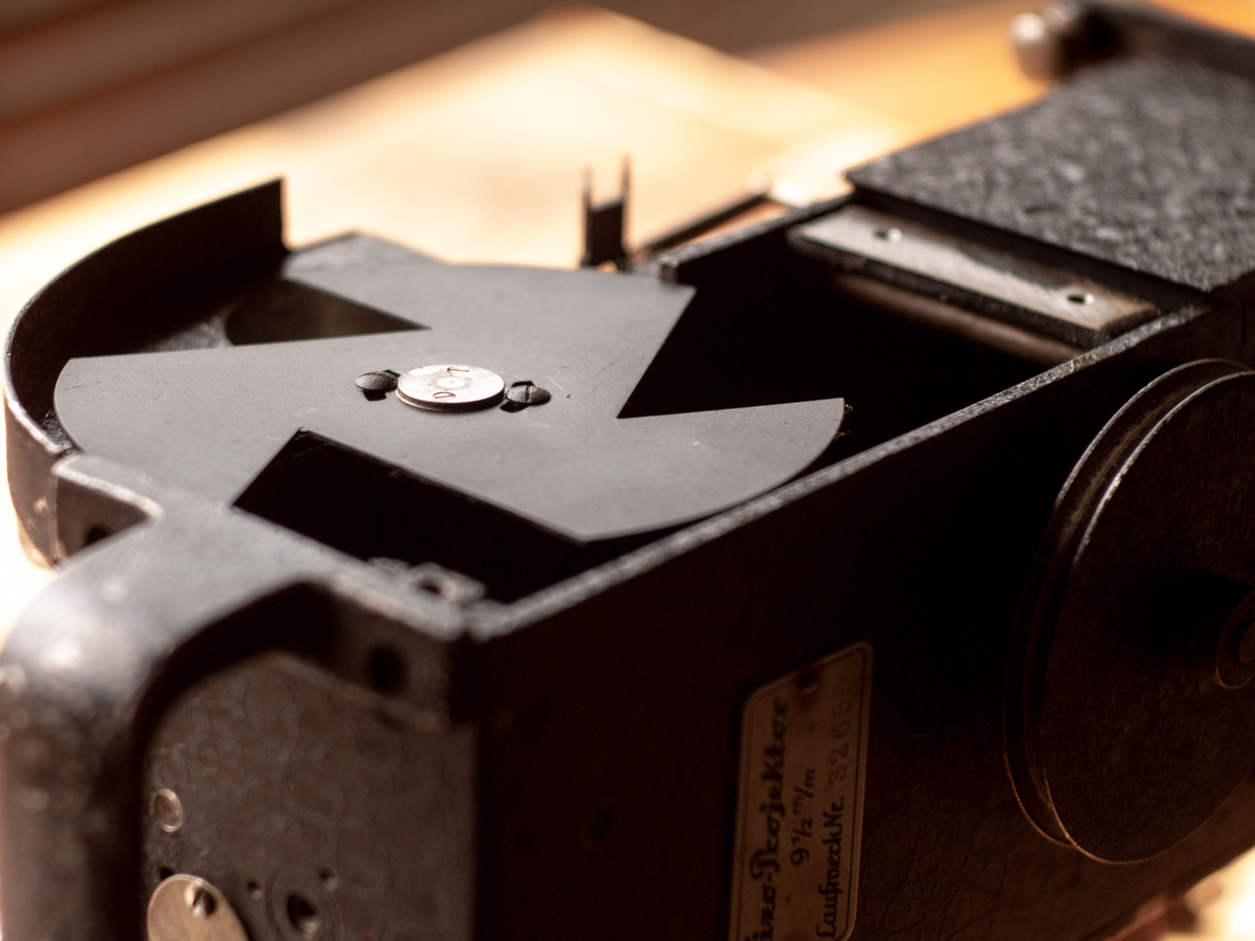 1) 映写機パーツの背面。中にシャッター羽根が格納されています。