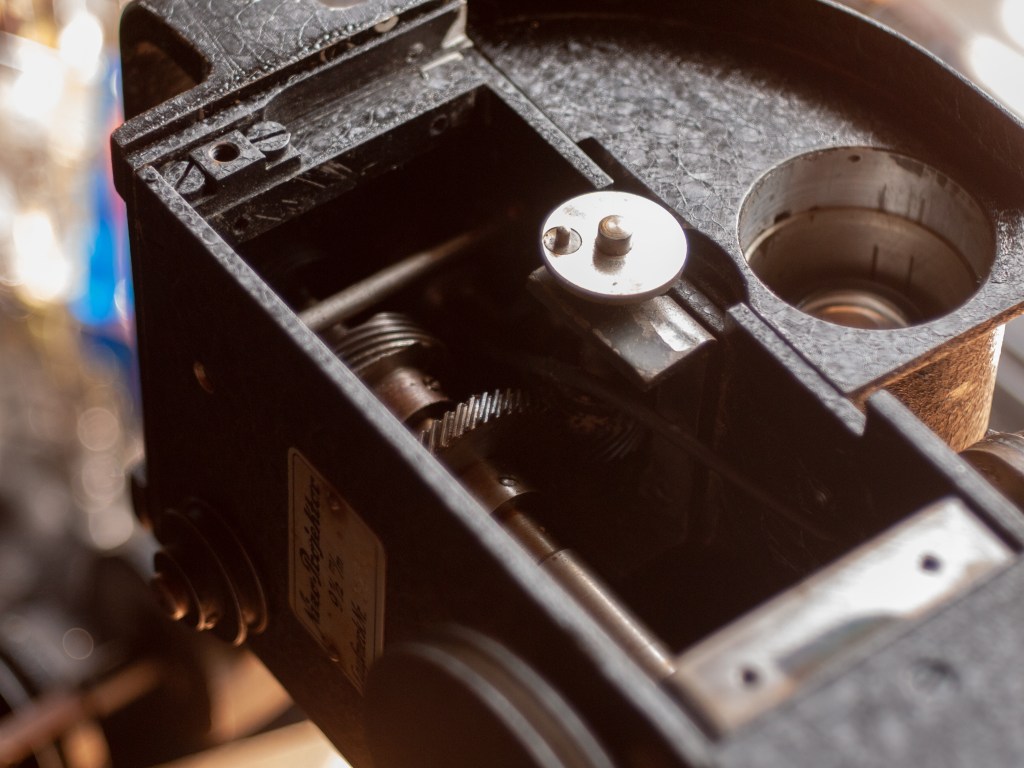 戦後の映写機のように羽根がしっかり組みこまれていて取り外しの効かないタイプだったり、手の届きにくい位置にあったりだと苦労します。ニッツォHS型はその点作りがシンプルで作業しやすかったです。