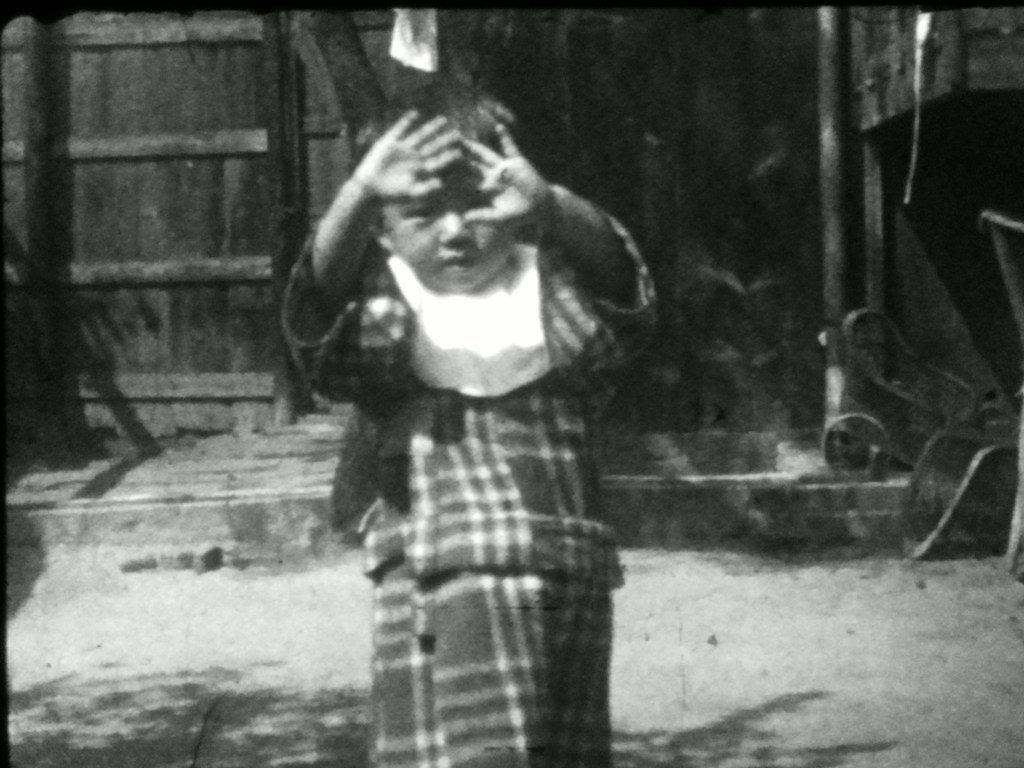 自宅の中庭で遊んでいる子供4人を父親が撮影した内容です。冒頭はお手伝いさんと思われる女性を交え「かごめかごめ」をしています。その後末っ子のおちびちゃんがカメラを前にポーズを取り始めます。場面は続いて縁側へと移り、兄姉弟が仲良く戯れている様子。大きな飼い犬も登場。最後は再び中庭へと戻って映像が終了。