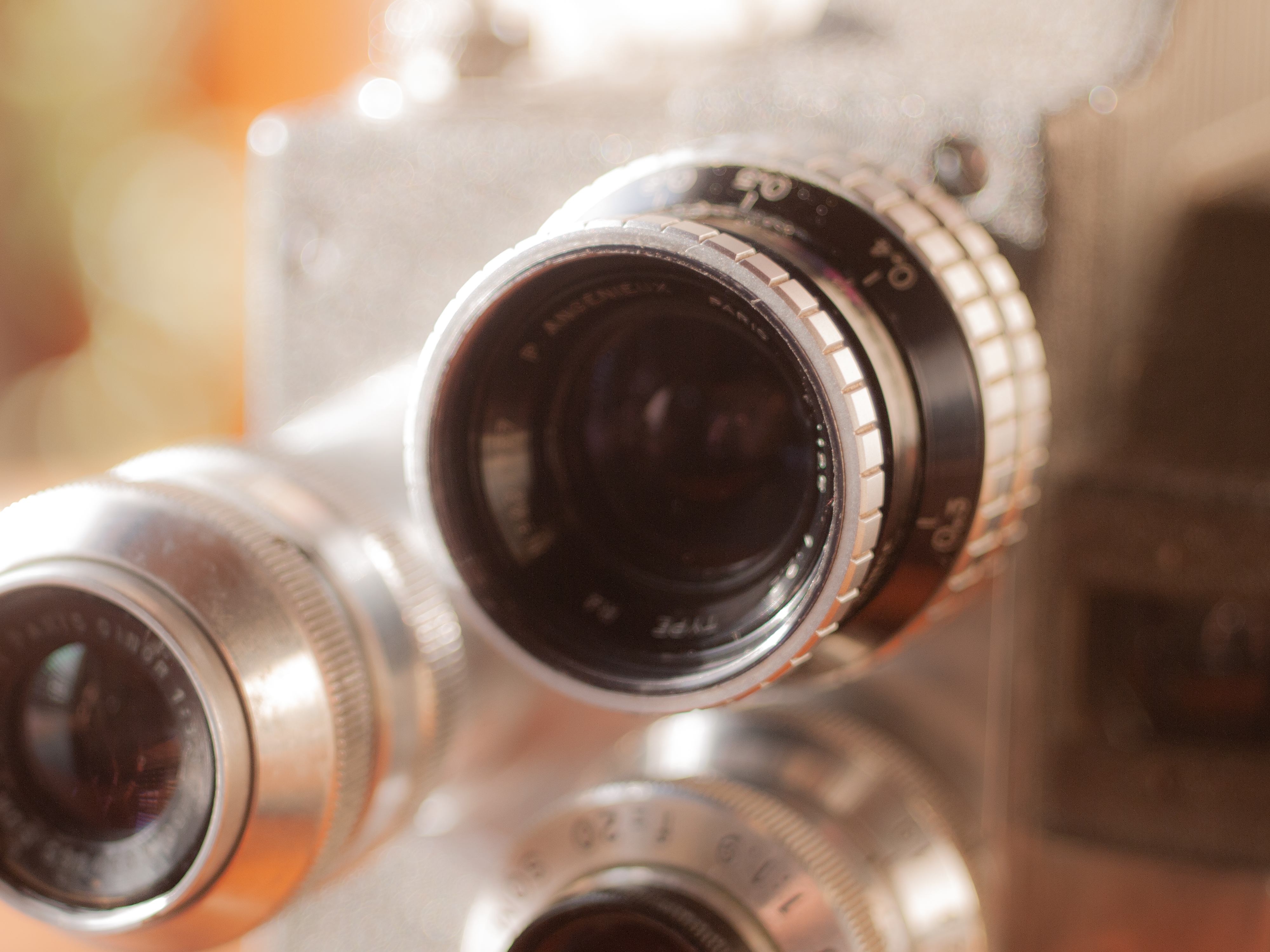 1940年代末、動画カメラの大型化とハイスペック化が進んでいく中で本家仏パテ社が発表したのがターレット型の本機でした。