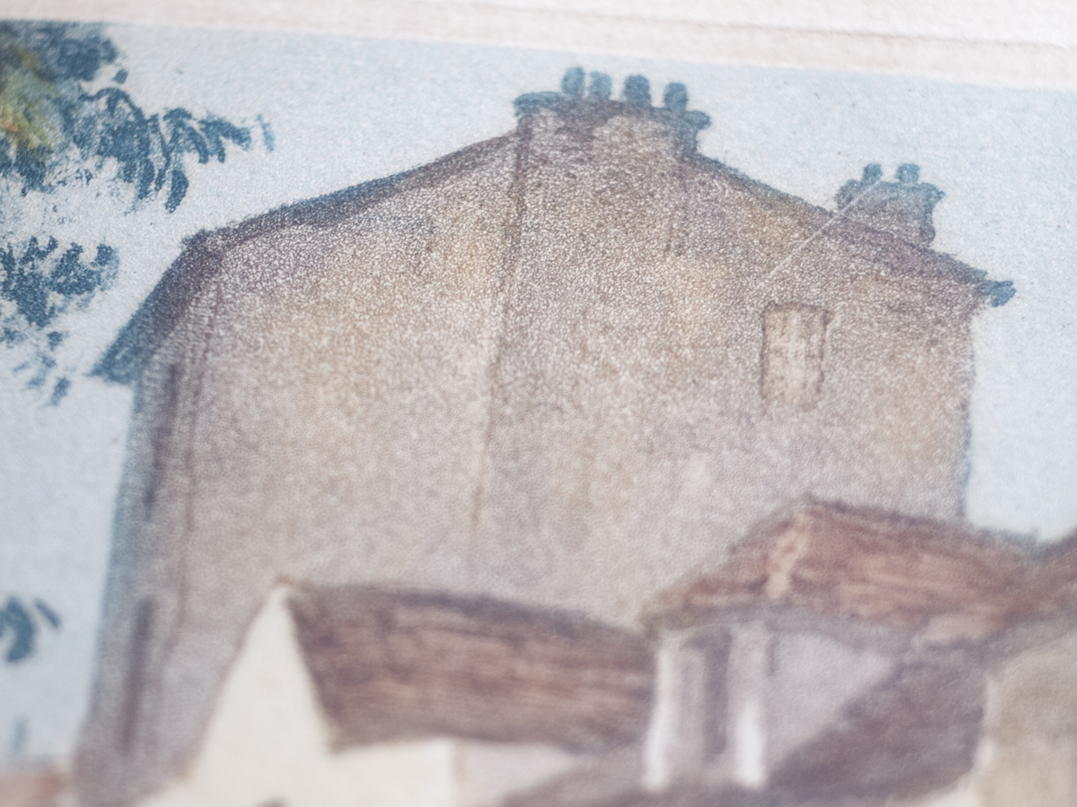 画家として大成したわけではないためトゥールヌールの絵画についてはカタログなどは残っておりません。それでも一点、作曲家ベルリオーズを扱った英語サイトで生家の変遷を追った資料の一つにトゥールヌールのリトグラフが挙げられていました。左上に作品名、右下に作者名の配置、筆跡も同じであるため画家本人が自筆サインしたと断定して良いと思われます。