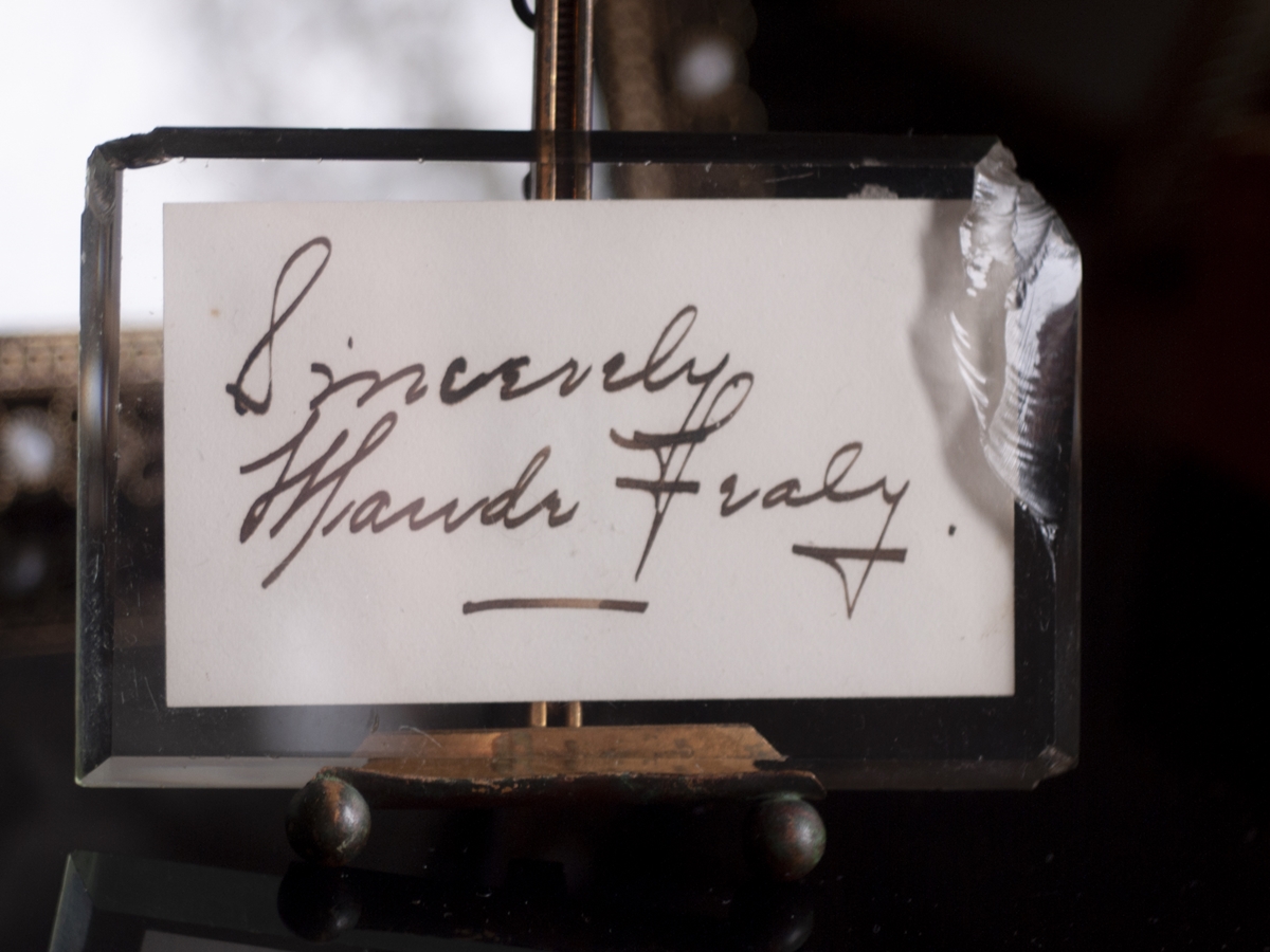 撮影者は不明。モード・ファーリーは早くからイギリスに進出しており、写真もイギリスで撮られたものではないかと考えています。写真裏にヒントがありそうな気がするのですが、裏蓋をテープで留めてあるため触らないことにしました。