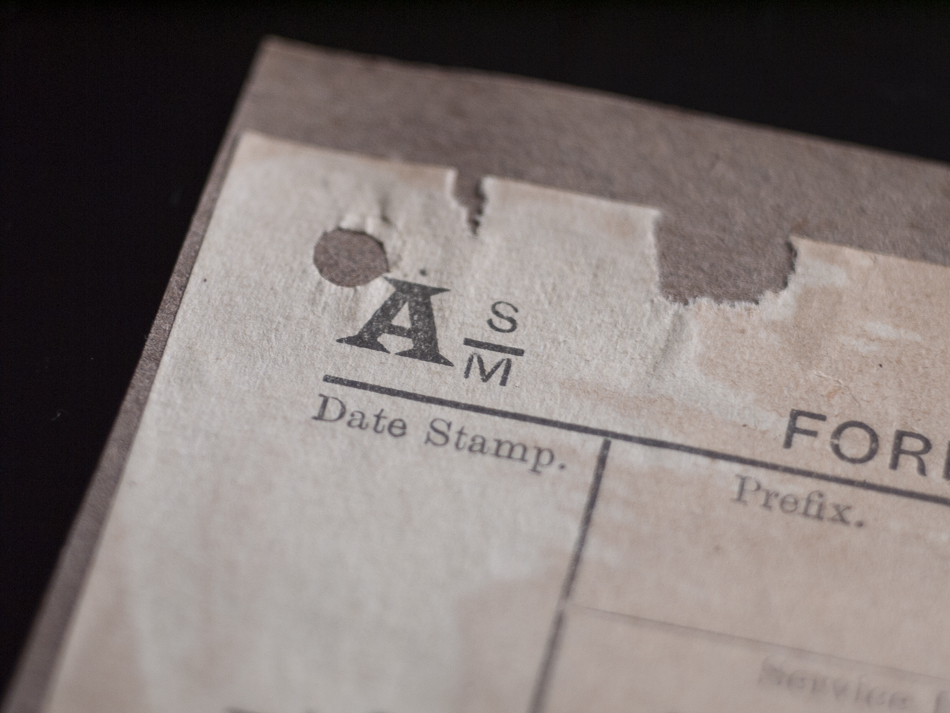 複写式のカーボン紙に記録された電報を台紙に貼ったもの。サイズは縦12.5×横19cm。