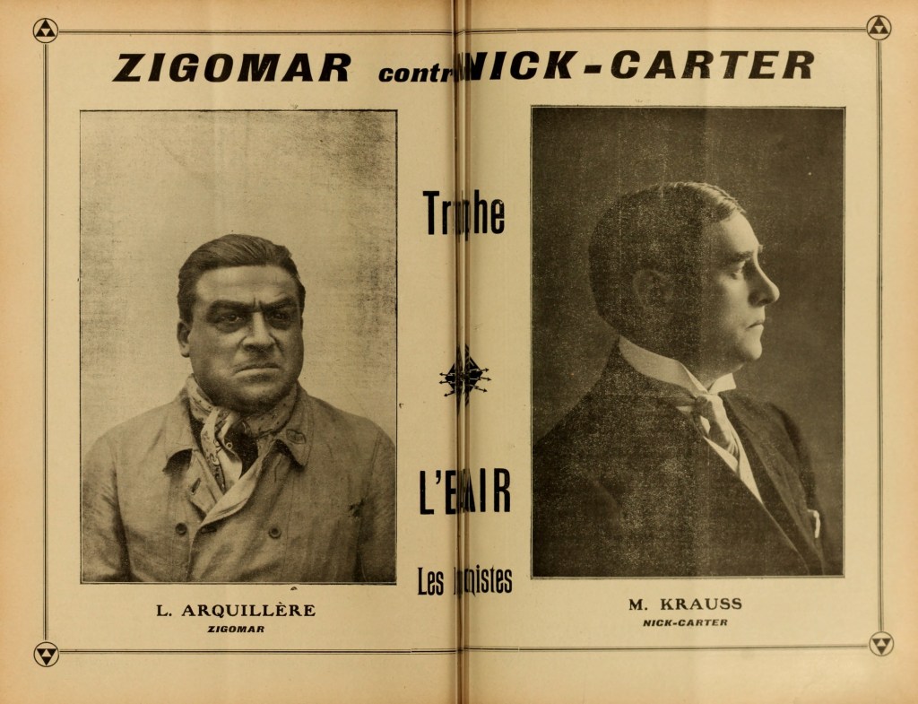 トゥーロンの酒場の地下に阿片窟があり、ニック・カーターはジゴマ捕縛のため変装して潜入捜査を行っています。しかしオルガと共に逆に追われる立場となり、自動車の追跡劇の末、再び悪党の手に落ちるのでした。(第三部)