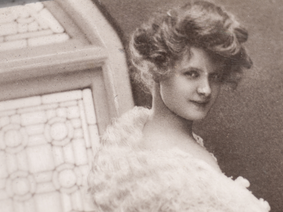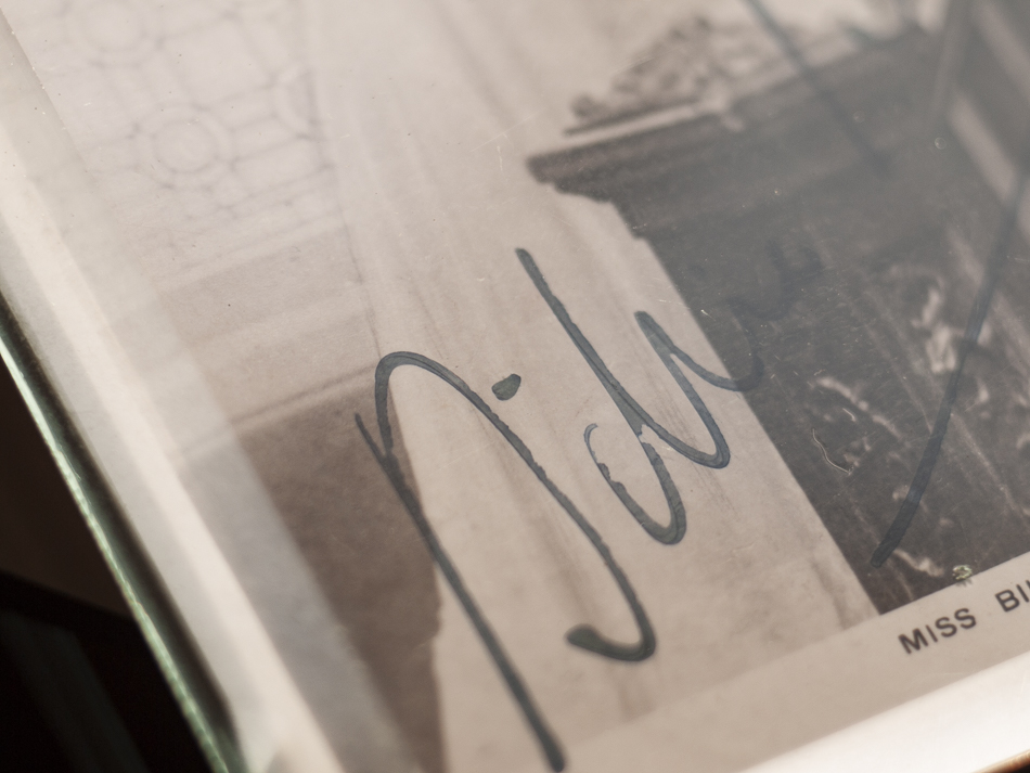 サイン入りの絵葉書は英ロータリー・フォトグラフィック・シリーズの一枚で、英国南部の町ボーンマス在住のS・マクブロック嬢宛に送られています。消印はロンドン局1909年5月26日付。もう一枚同嬢が所有していたサイン無しの絵葉書とセットで入手したものです。