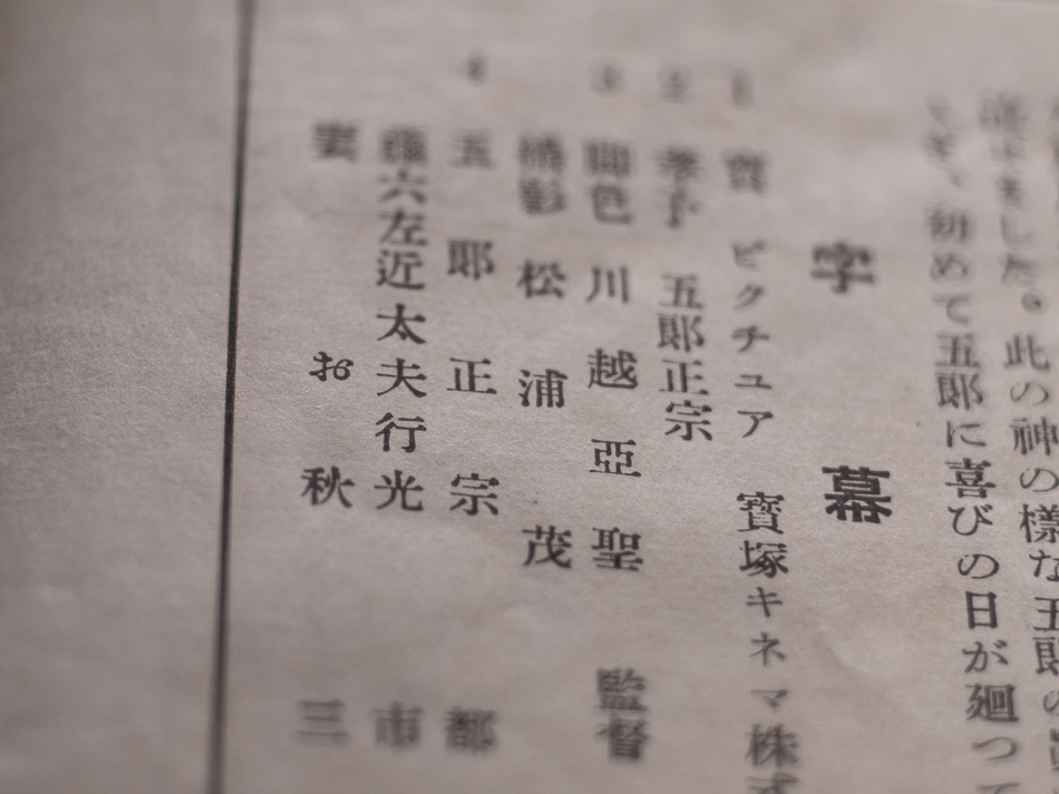 メイン企画は寶塚キネマ製作の『孝子五郎正宗』(S-403、特大鑵4巻)。紹介1頁に次いで3頁を費やして全字幕を掲載しています。