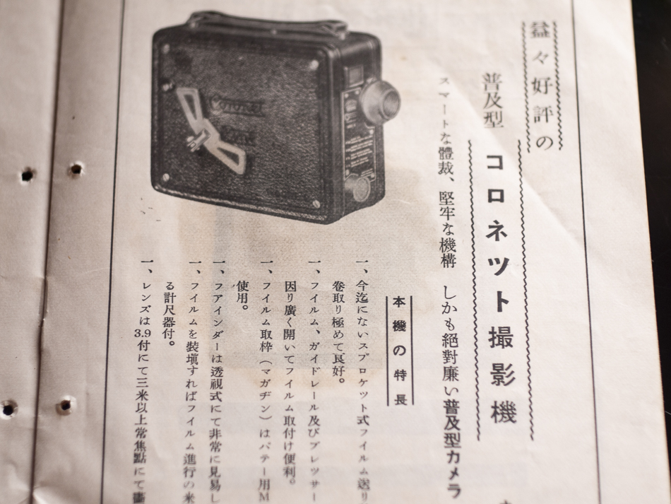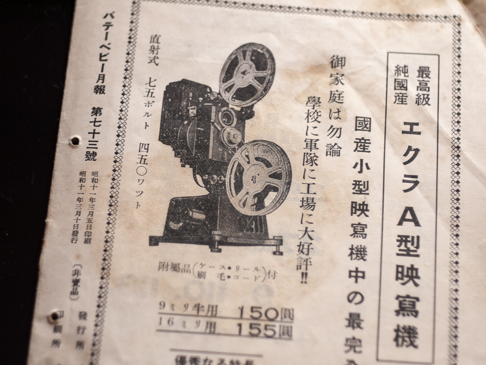 それ以外の紙面は広告となっています。アルマ映写機、エクラA型映写機、コロネット撮影機など1936年のトレンドが伝わってくるラインナップでした。