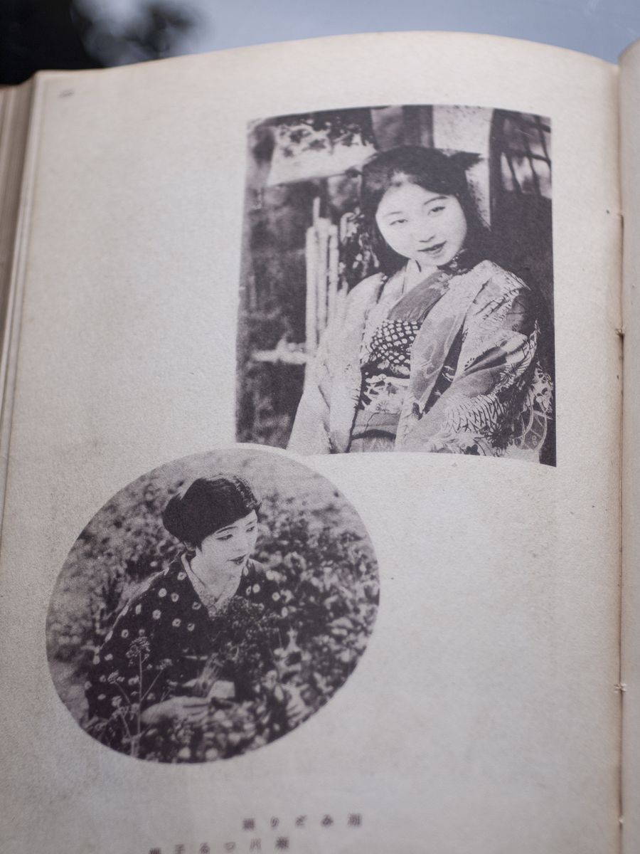 「寫眞」パートは全体(約350頁)の1/3を占めています。国内篇が充実しており、勝見庸太郎や正邦宏、鈴木伝明といった若手有望株、山本嘉一や井上正夫、藤野秀夫らの中堅組、その一世代前の澤村四郎五郎まで登場。女優陣では定番メンバー(川田芳子、五月信子、柳さく子、環歌子、マキノ輝子)を中心としつつ、現在では知られていない珍しい名前(桂照子、堀富貴子、穴橋章子、水田たつ子)も散見されます。