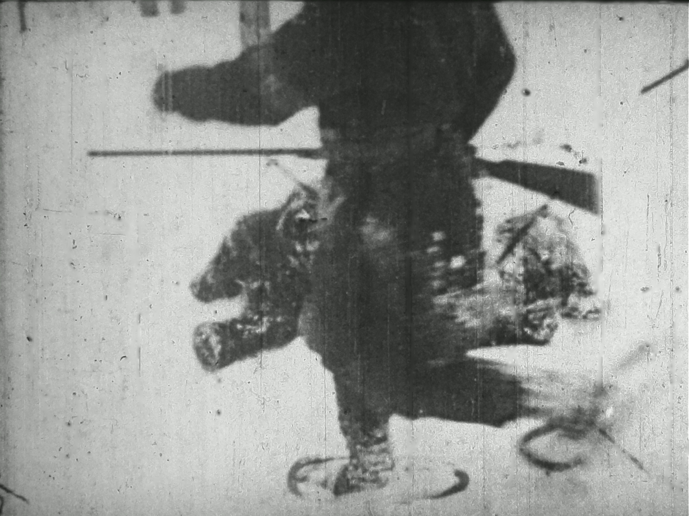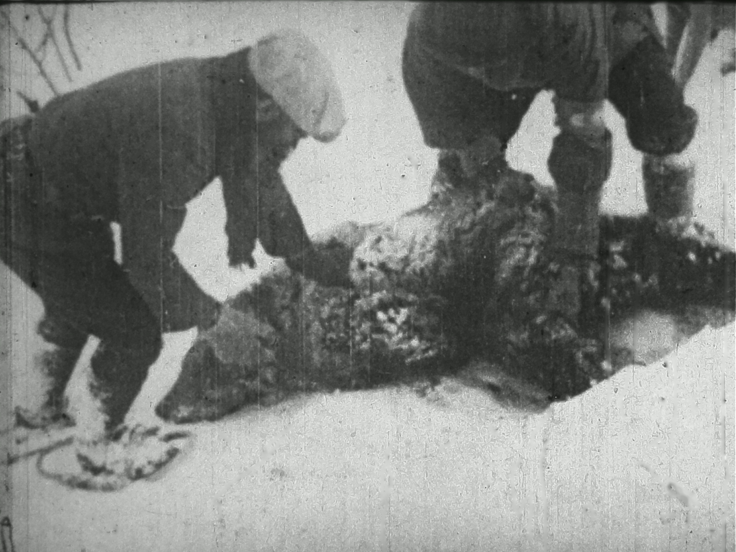 『消えゆく民、アイヌの人々』が古いオルソクロマチック形式のフィルムで撮影されていたのに対し『北海道アイヌの熊狩』はパンクロマチック式フィルムで撮られていて1930年代前半頃の動画と推定できます。