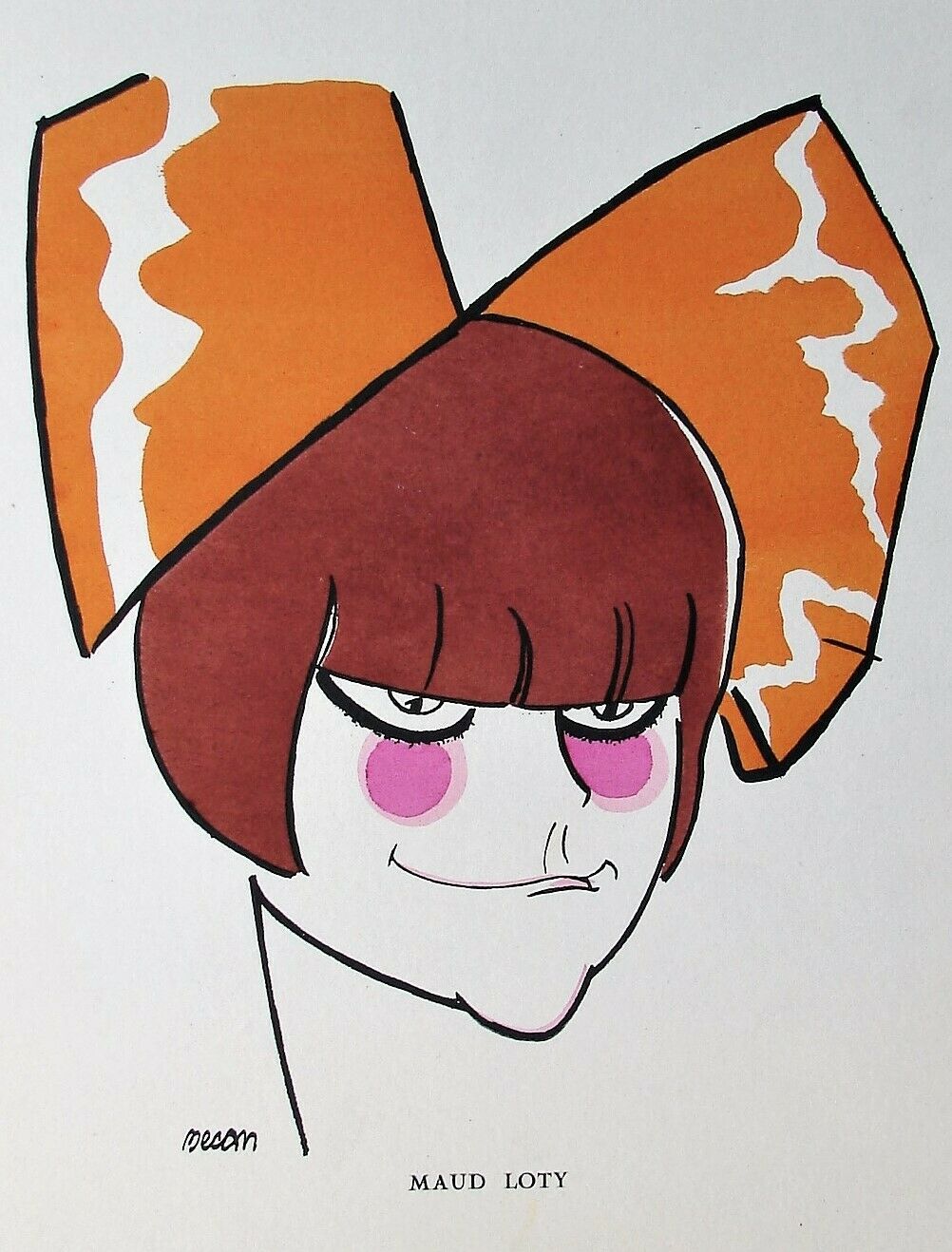 黒髪のおかっぱ、やや垂れ目気味、ぺったんこの鼻の童顔に大きなリボン姿…フランスの芸能界であまり見ないタイプの個性派で、当時は同性の支持も多く集めていました。キャラの立ち具合が絵描きたちの心をくすぐった様で多くのイラストが残されています。