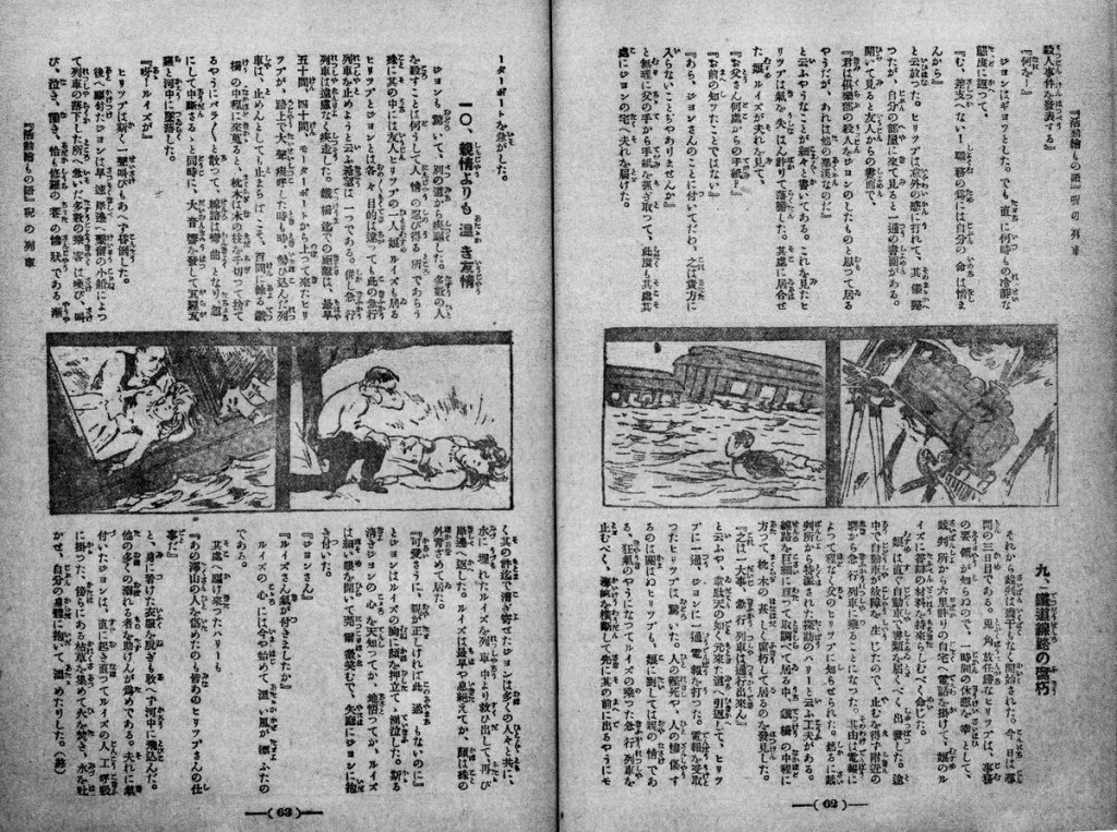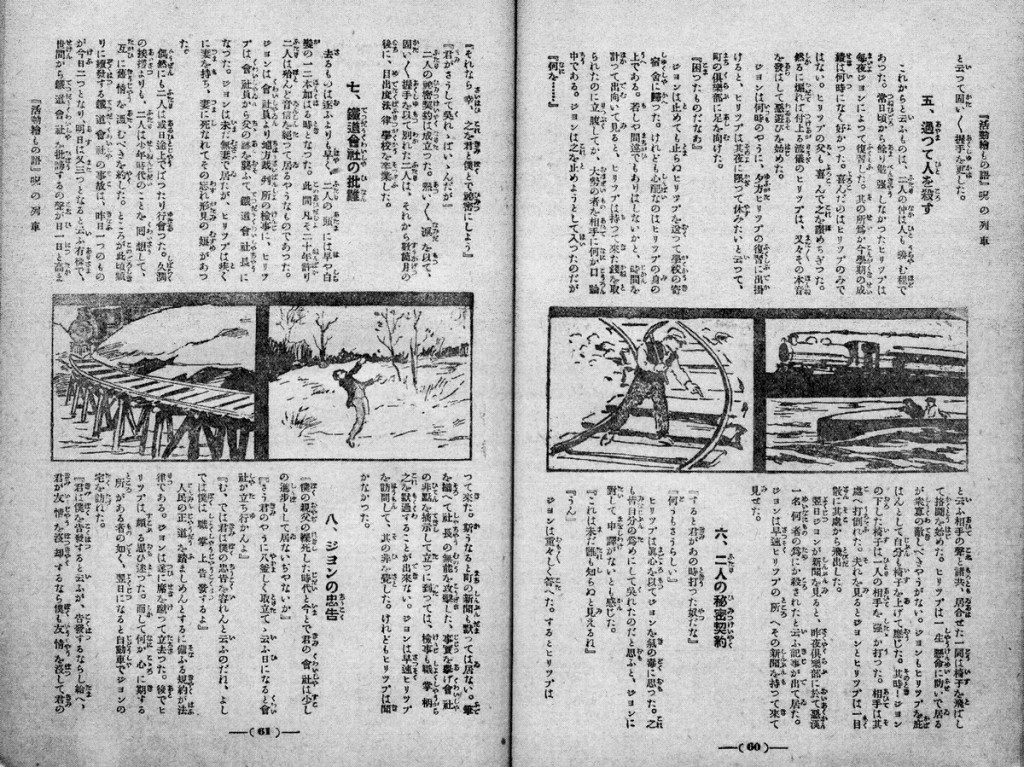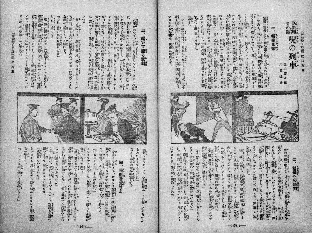 大正五年に日本で公開された『呪の列車』はキネマ文庫(榎本法令館)など当時の説明本文庫で取り扱われることはありませんでした。唯一、子供向けの読み物雑誌として人気のあった「飛行少年」誌の大正五年十二月号に「繪もの語」版6頁が掲載されています。