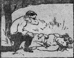 結末部の数枚は左右反転になっています。先日の投稿で触れた米Those Awful Reviewsでは『呪の列車』のロビーカード画像の左右反転例が紹介されていました。イラストレーターに渡った資料画像が元々反転していた、の仮説が成り立ちそうです。