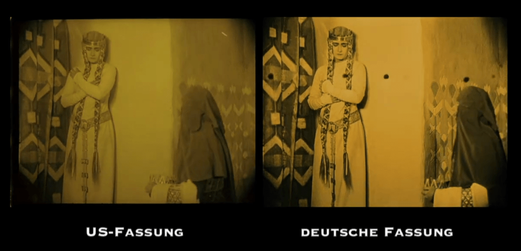 『ニーベルンゲン』には高画質のデジタル修復版(ムルナウ財団2010年版)がありますので通常の観賞はそちらで差し支えないと思います。とはいえオリジナル公開から10年も経たずに発売された9.5ミリ版には修復版と「違う」点も多いため目を通してみる価値は十分にあります。2010年デジタル修復版を収めたDVD・ブルーレイの特典動画『ニーベルンゲンの遺産』(Das Erbe der Nibelungen, 2011)の要点を挙げていくと: