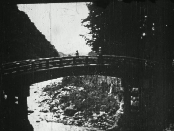 1920年代後半に伴野商店が自社の9.5ミリ作品を展開し始めた当初、御当地物のフィルムはそこまで重要視されていませんでした。カタログ番号70番台辺りから次第に数が増え始め(74番に『日本アルプス』、78番に『日本三景』)、20年代末頃にはカタログ内で結構な比重を占めるようになってきます。『日光旅行』は同社カタログの76番となっていて初期の御当地物9.5ミリに当たります。
