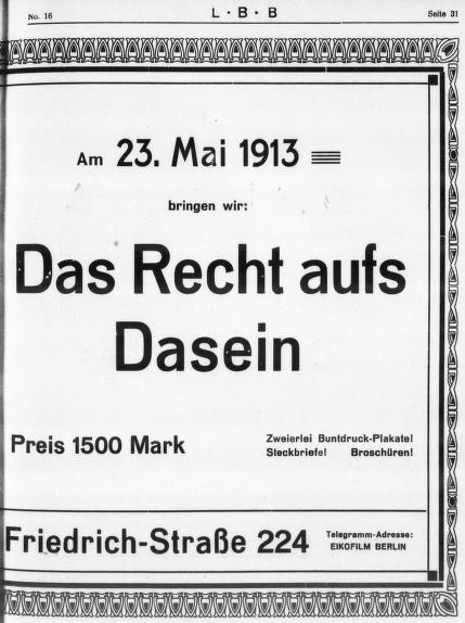 『秘密』(原題不詳、Das Recht aufs Daseinかも) 1913年10月25日・みやこ座