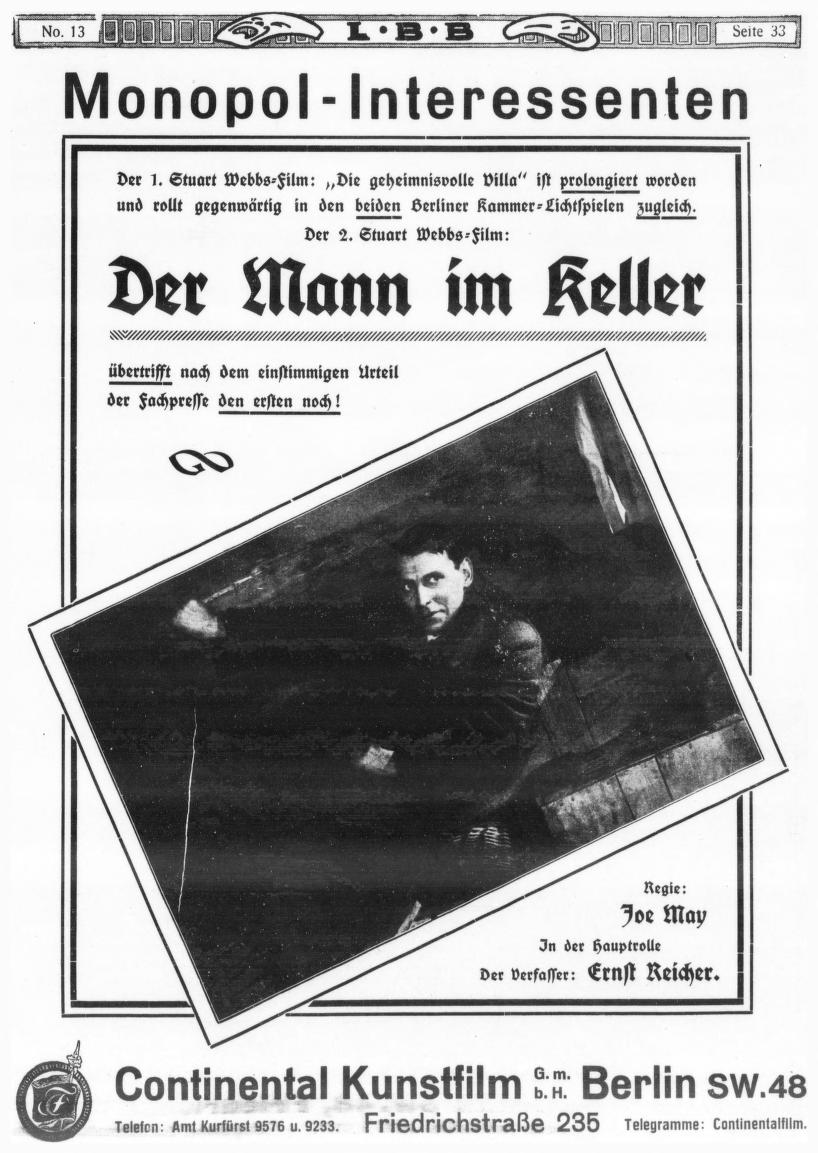 『續地下室(二人ドーソン大佐)』(Der Mann im Keller)1914年6月22日・帝國館