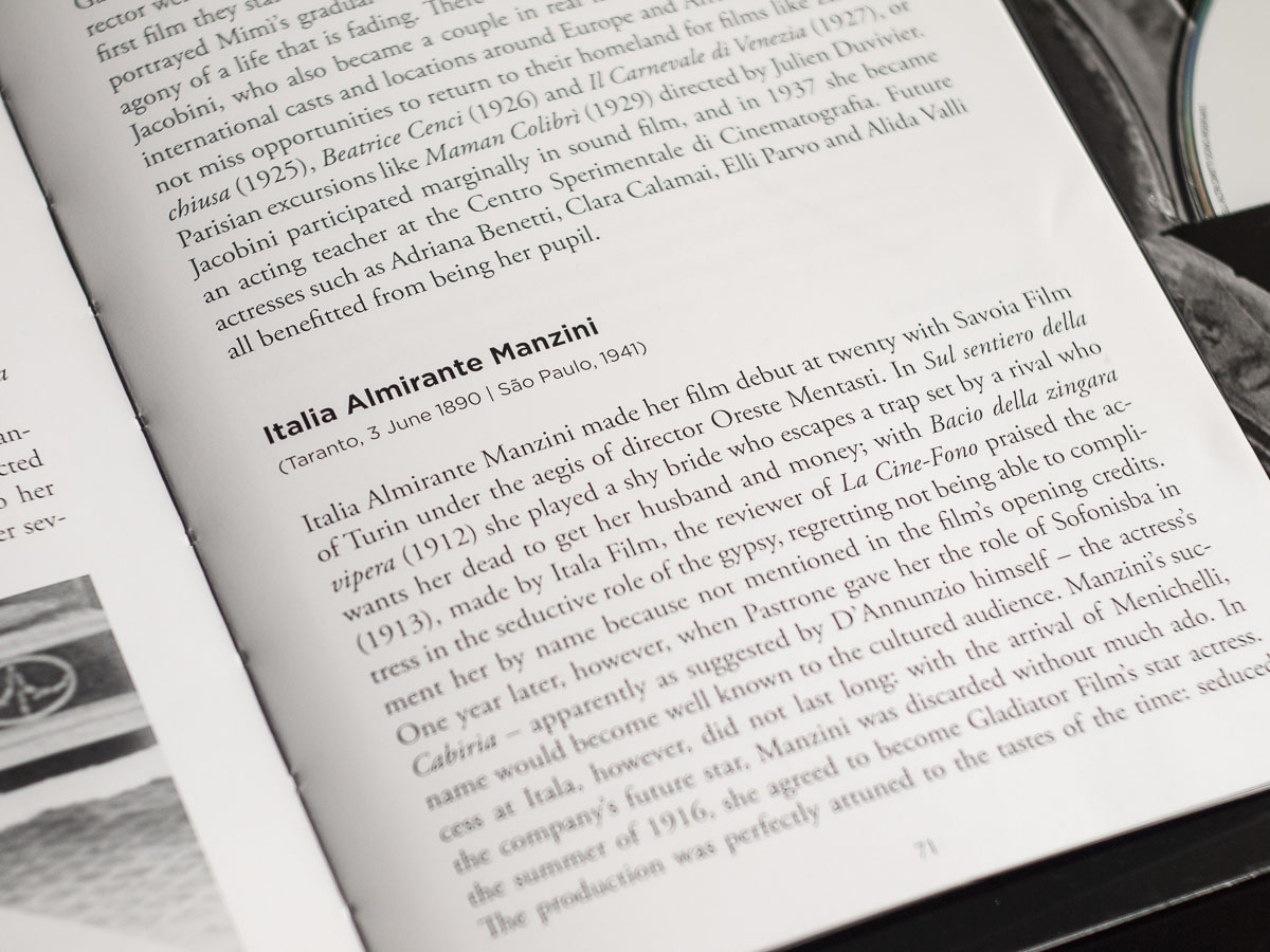 ブックレットはイタリア語/英語によるもので、専門家による作品各論4編、主要俳優紹介、書き下ろしサントラ紹介を中心とした構成となっていました。