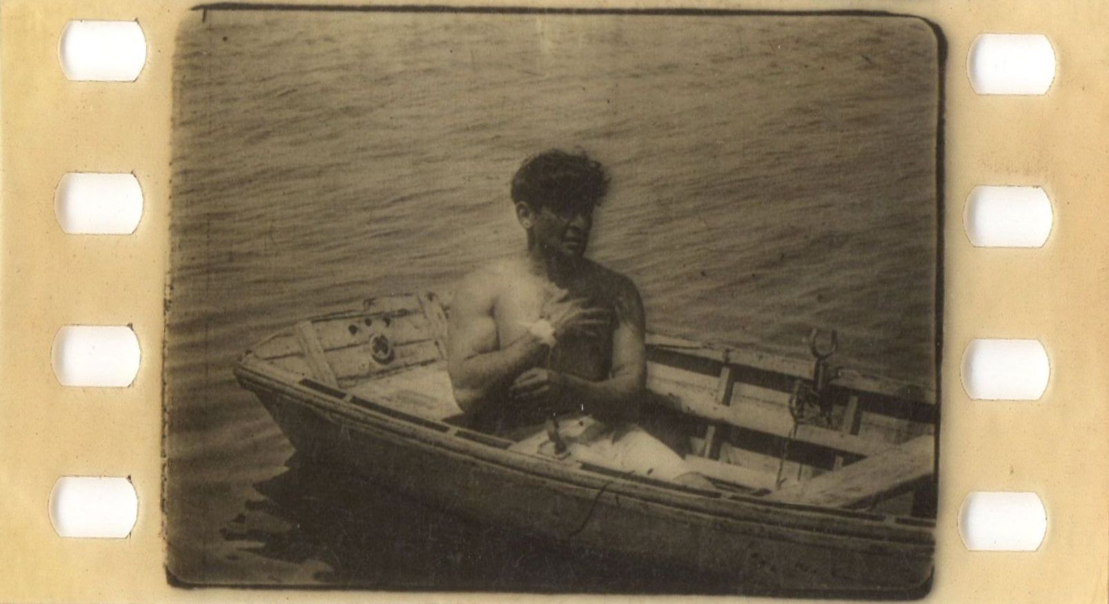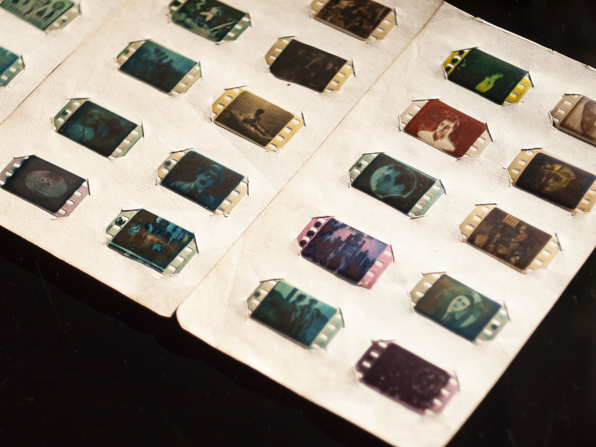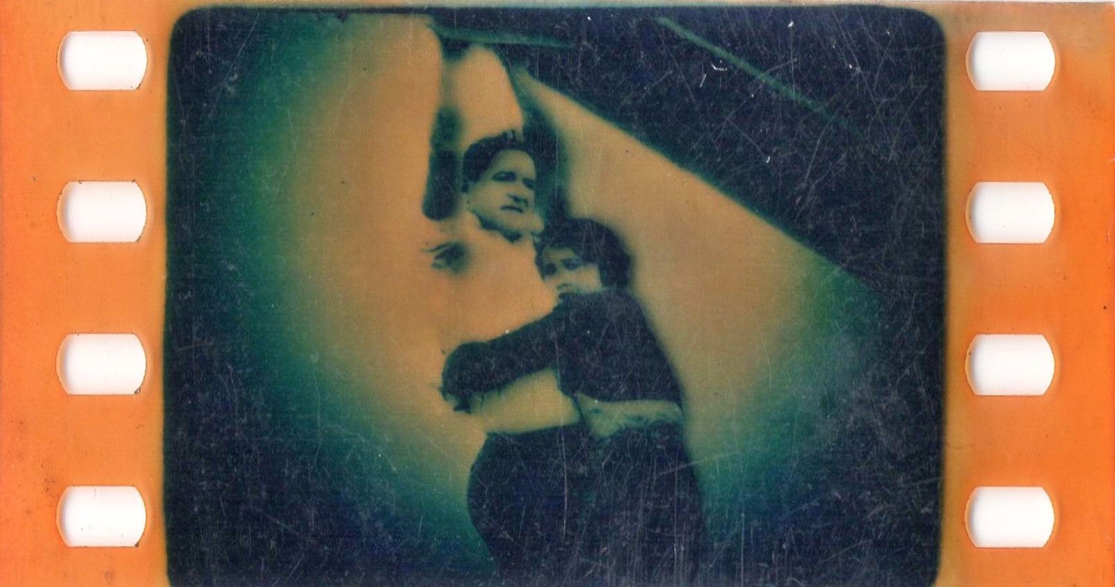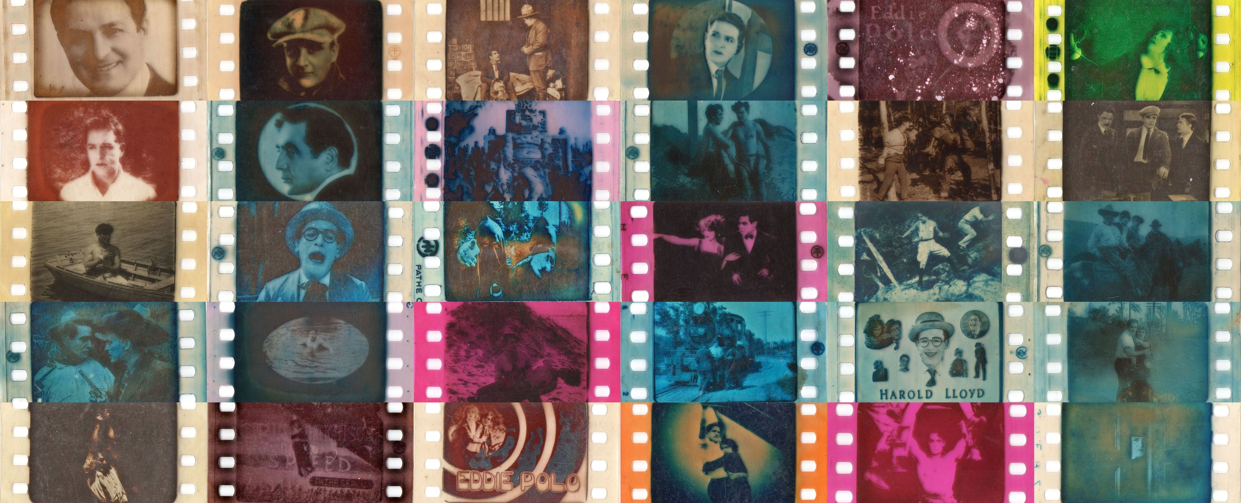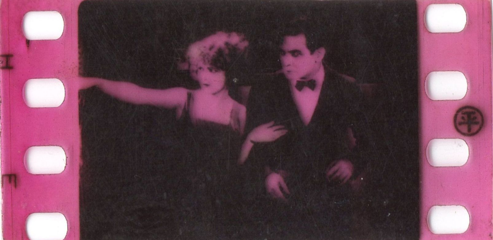 35mm nitrate film fragments (positive, toned) on pierced papers, c1922