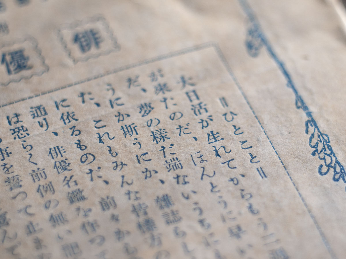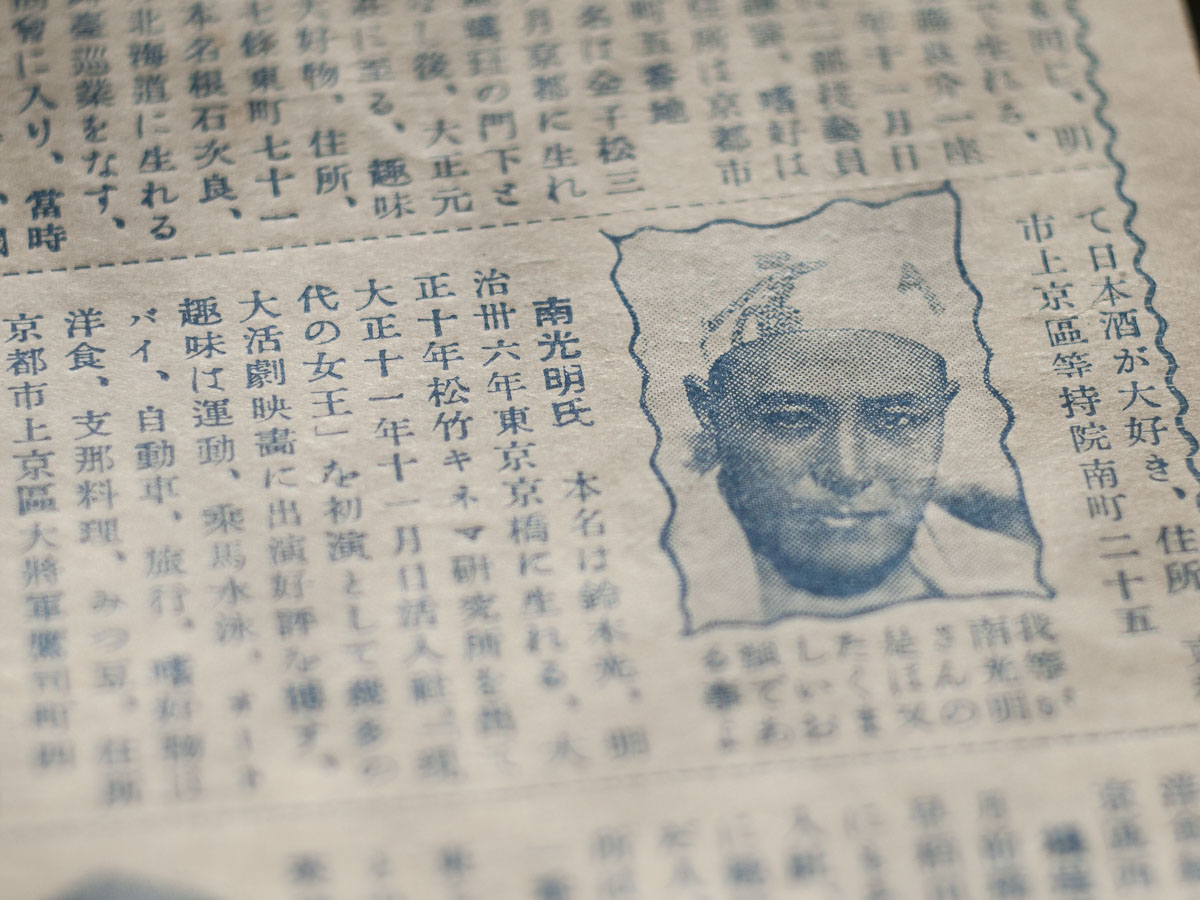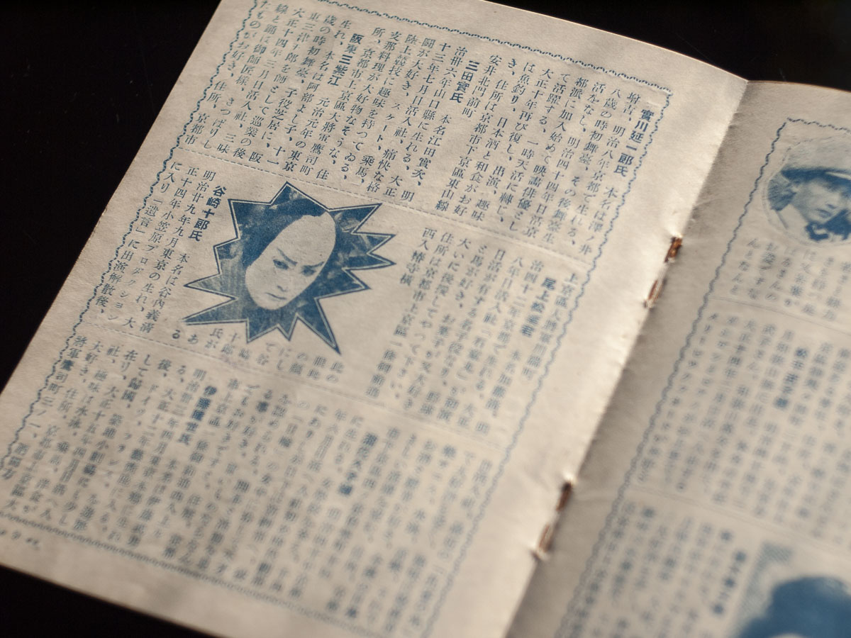 ただ、この名鑑が出た時期の日活は設立以来最大の危機を迎えていました。大正15年9月11日、日活の大黒柱であった尾上松之助が亡くなっているのです。裏書を見ると印刷所の納本は9月8日。修正は間にあわず、松之助存命の書き方を残したまま購読者の手に届けられてしまう形となりました。