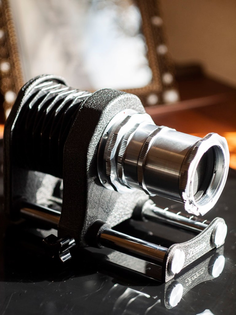 冒頭には「映写機用レンズの実写能力比較システム」と書きましたが、その実態はミラーレスカメラを土台にしたデジタルフィルムスキャナーです。