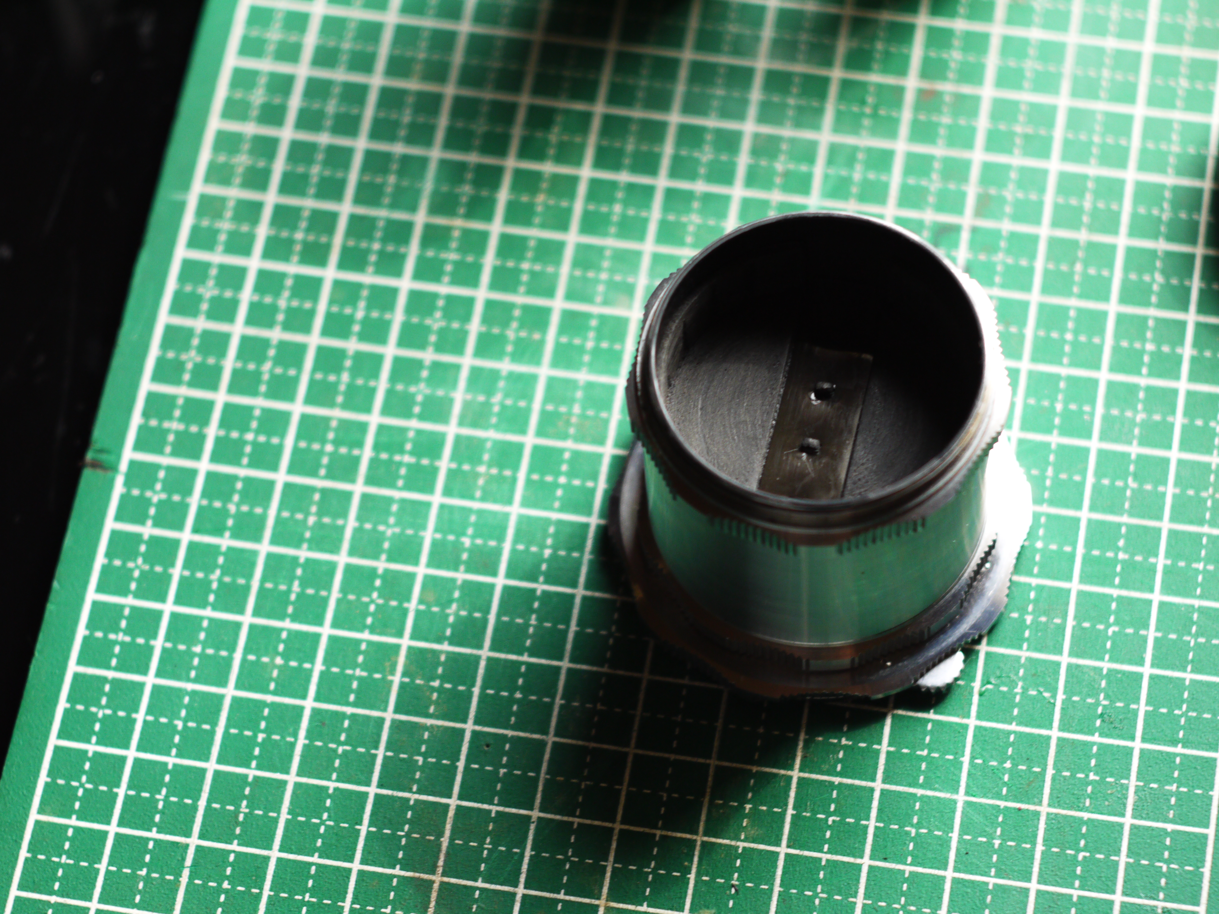 映写機用レンズには共通規格としての「マウント」概念がないため外径や長さがまちまちです。レンズの外径を図り、フィットする形でリングを作っていきます。