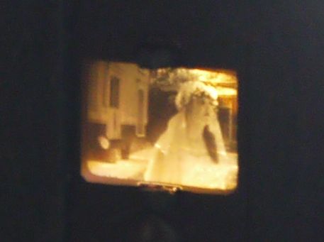 蛇腹でレンズとの距離を調整し、映写された画像の幅とセンサー幅が一致する地点を見つけさらにピントをあわせていきます。上手くいくとミラーレスカメラの画角(3:4)一杯に拡大された映像が映り、デジタル撮影ができるようになります。