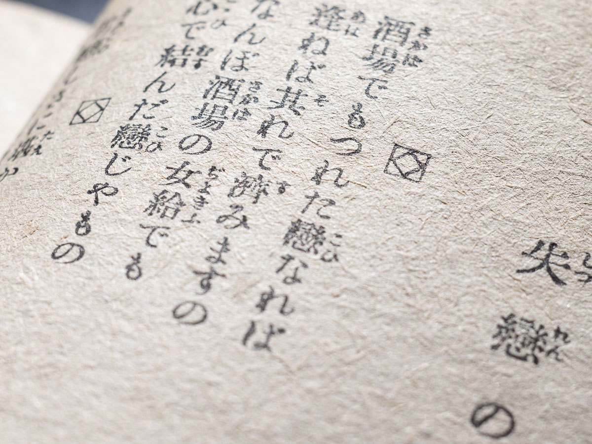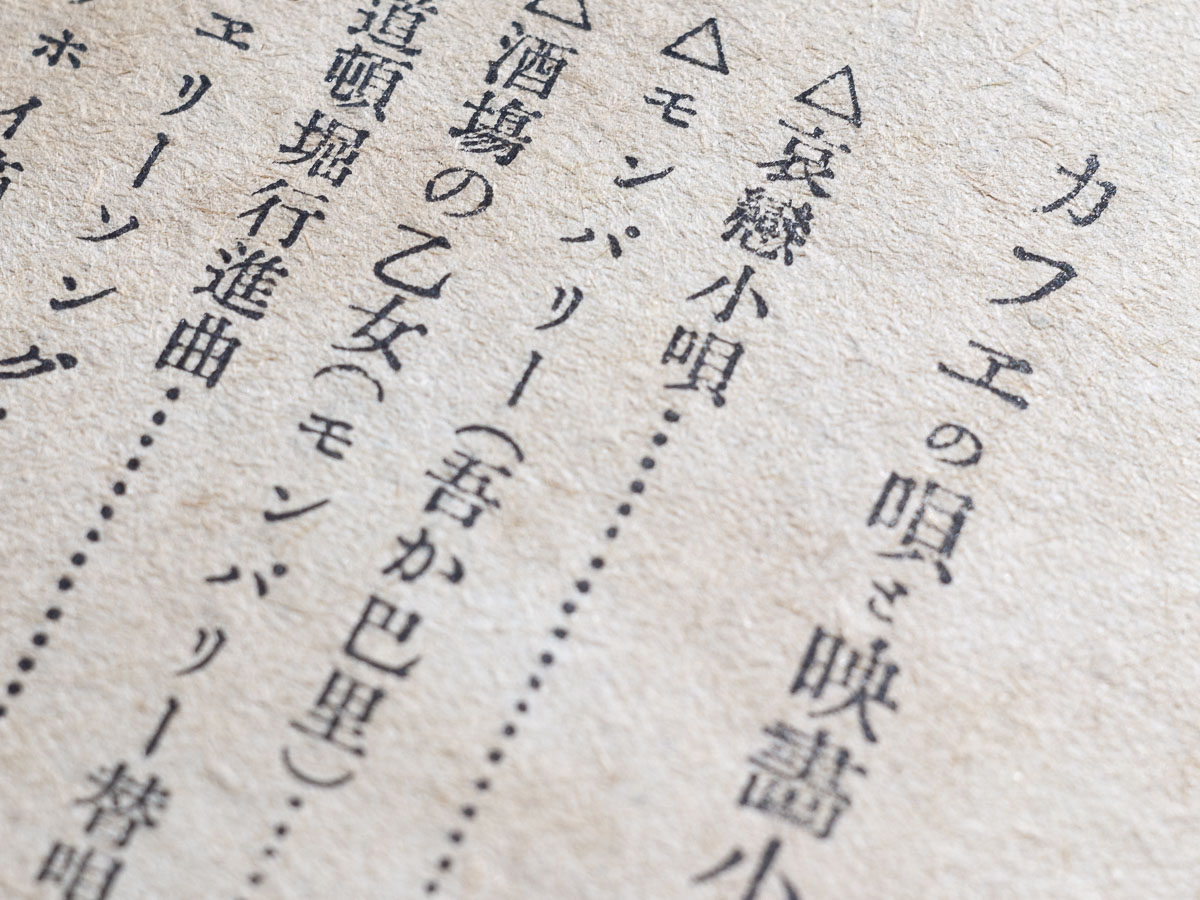 本書収録曲では新しい部類に入る「チエリーソング」「失戀の女給」の歌詞は、今迄の悲恋パターンに女給+男性(男子学生、魅力的だが身勝手な男など)を追加しているように見えます。実際のカフエや酒場ではもっと生々しいドラマも展開されていたのでしょうが、少なくとも流行歌として表面化してくる部分では旧来型のしっとりとした情緒が尊重されていたのだと思います。