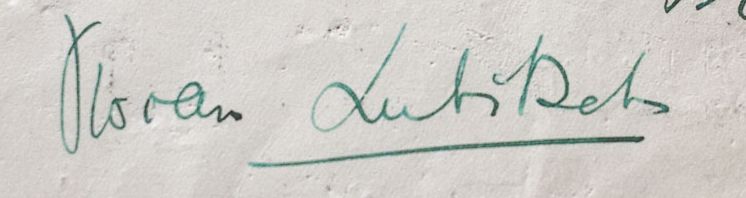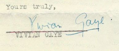 この時点で結婚は決まっていて「今度彼女と再婚するんだよ」の紹介を踏まえた上でサインをしたと思われます。名字に下線を引くのは彼女の手癖で、1933年に仏監督マルセル・レルビエに宛てた書簡で「ヴイヴィアン・ゲイ」の「ゲイ」にも下線を確認できました。