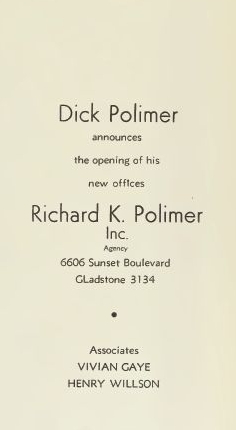 美人女優と美人マネージャーの二人三脚は話題となり雑誌に写真が載るようになります。また彼女は仲介エージェント業に関わっていて様々な企画を監督や映画会社、作家に持ちこみ、調整から得られる仲介料を得ていました。1933年頃にはジョイ&ポリマー社に雇われる形で、その後1934年6月にディック・ポリマーが独立して会社を立ち上げた際にも「提携」の形で名前が出ていました。