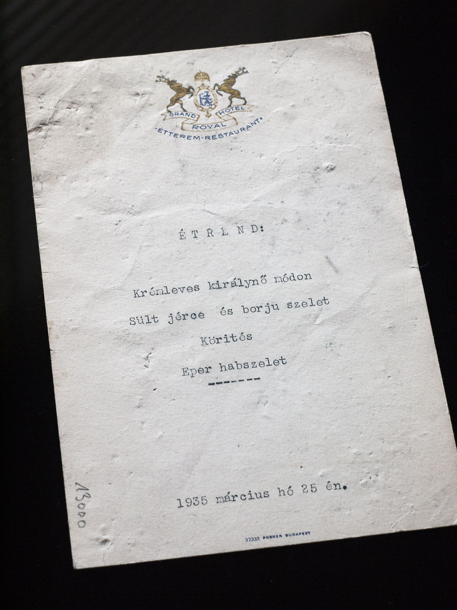 Menu, “Royal Grand Hotel”, Budapest. Signed by Ernst Lubitsch & Vivian “Lubitsch”, March 25, 1935.