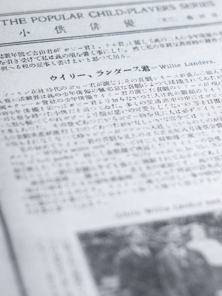 私の初めてウイリー君の喜劇を見たのは大正元年八月淺草金龍館で映寫した「ウイリーのボート」”Willy’s sailor suit” 次いで同じく福和館で映寫した「ウイリーの計略」”Willy’s ruse” 同じく金龍館で映寫した「ウイリーとジゴマ」”Willy wants to be like Nick Carter” 等の數本であつた。[…]