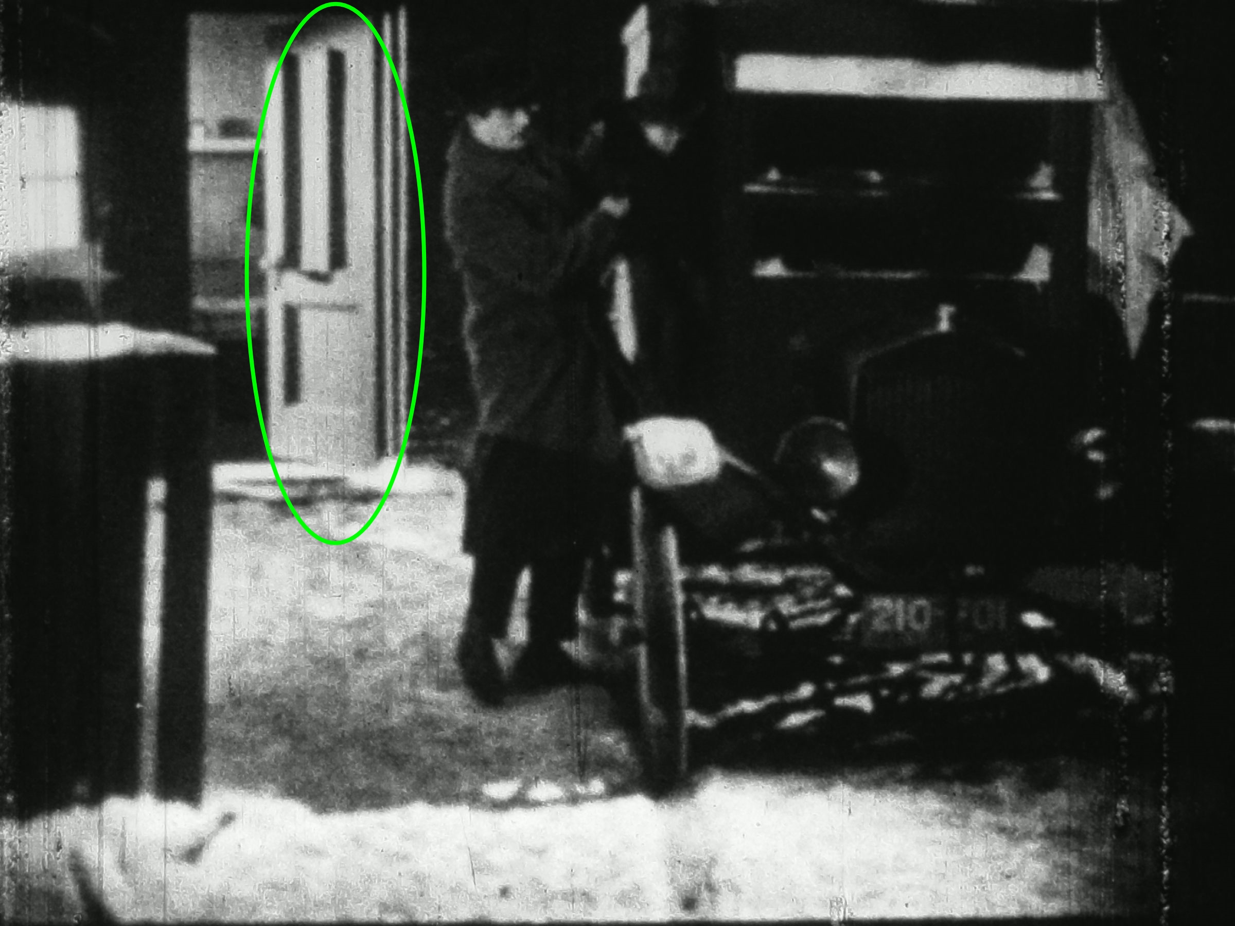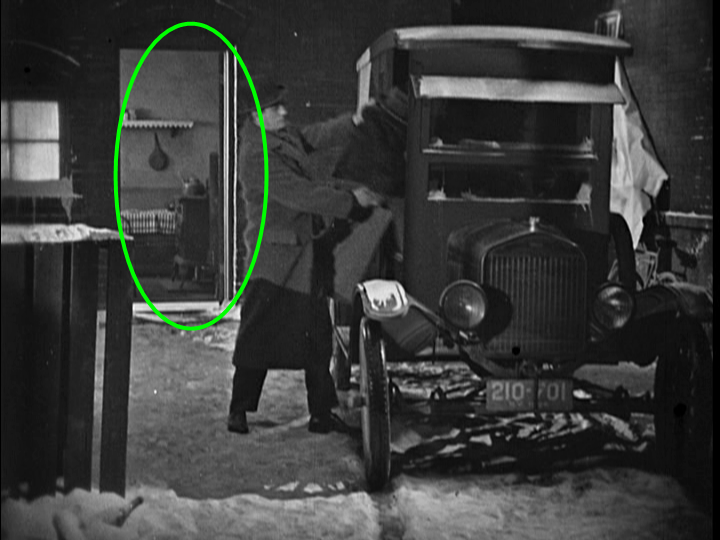 また3人組が悪だくみの相談をしている場面では9.5ミリ版(右)だと ロン・チェイニーの背後にドアノブが見えているのに対し、DVD版(左)ではカメラの角度が異なっていてドアノブが見えなくなっています。