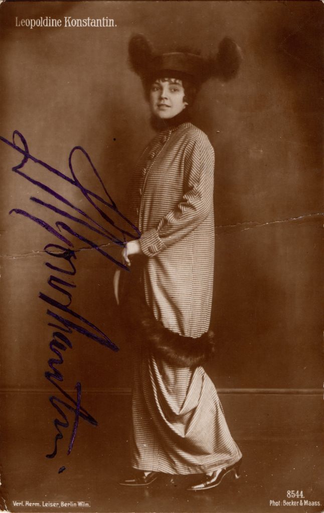 レオポルディーネ・コンスタンチン(上)、山根寿子(下)さんのケースでは絵葉書に印刷された白字のサインを上書きする形で万年筆の黒いサインが残されています。