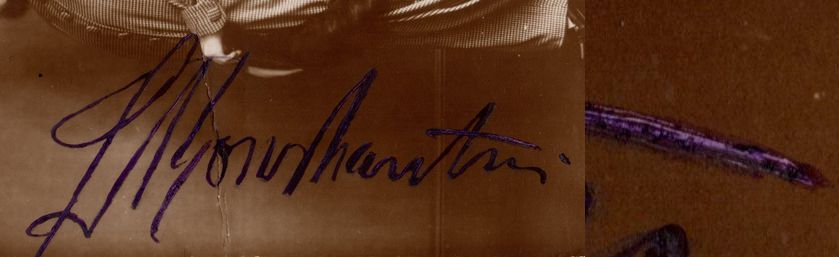 例えばグロリア・スワンソンの真筆は大文字の「G」「S」ともにデザイン化された流麗な筆跡で上の写真とは似ても似つかないものです。桑野通子さんの例では名前の漢字(通/道)が間違っています。フェイクと言ってしまえばそれまでですが2例ともに贋作にしては稚拙すぎ、売り物にするために残されたサインとは異なると考えられます。