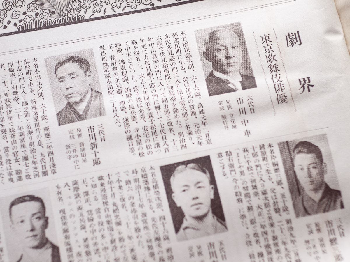 1925年(大正14年)初頭、『芝居とキネマ』新年号の巻末付録として作成された12ページの俳優名鑑。