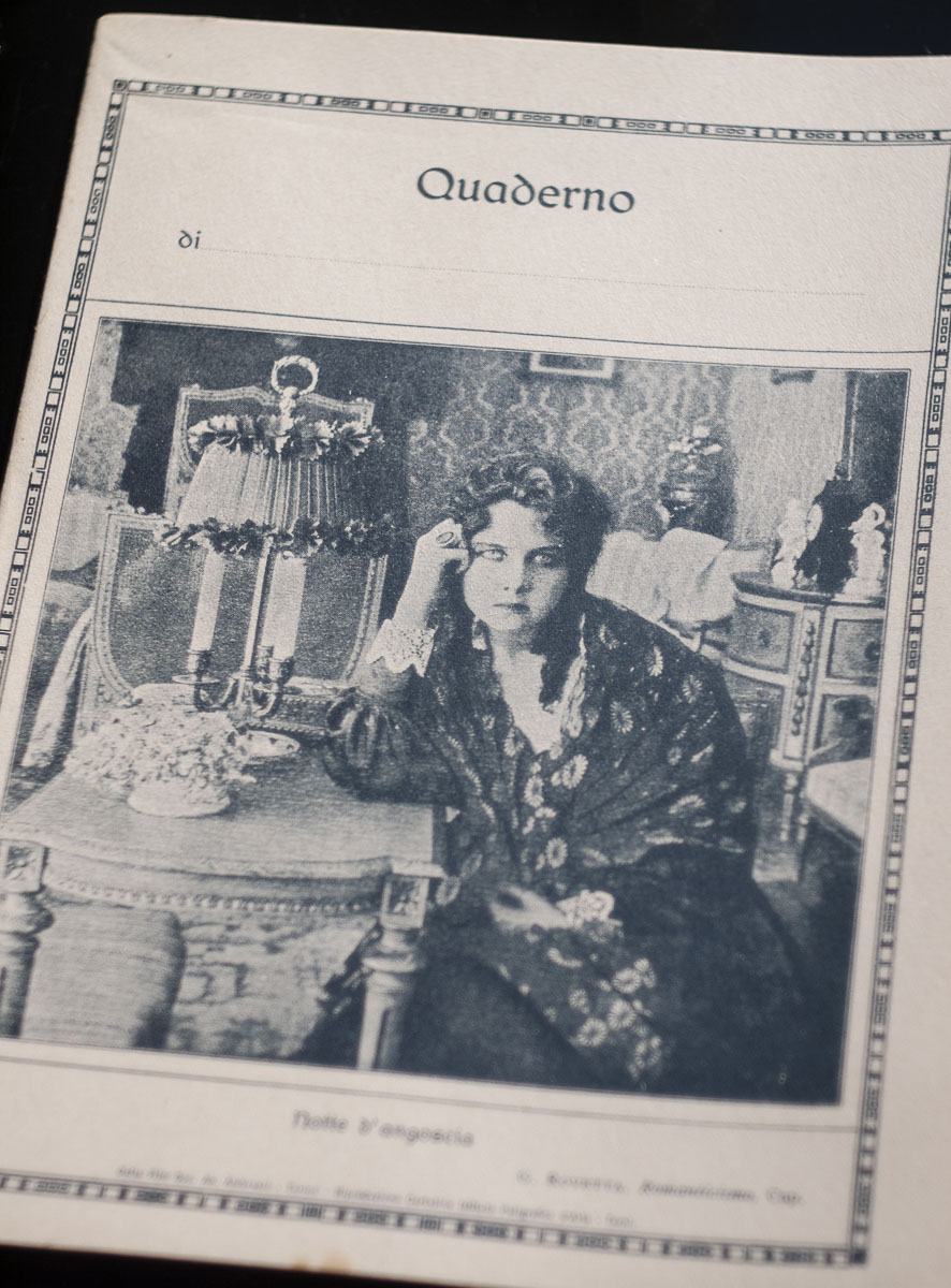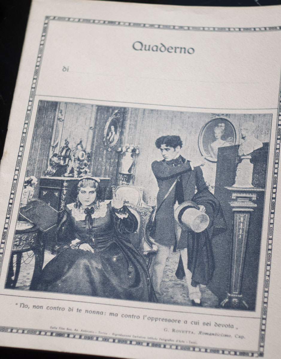 1915年に公開されたイタリア映画『ロマンチシズモ』のスチル写真をあしらった未使用のノート4種。