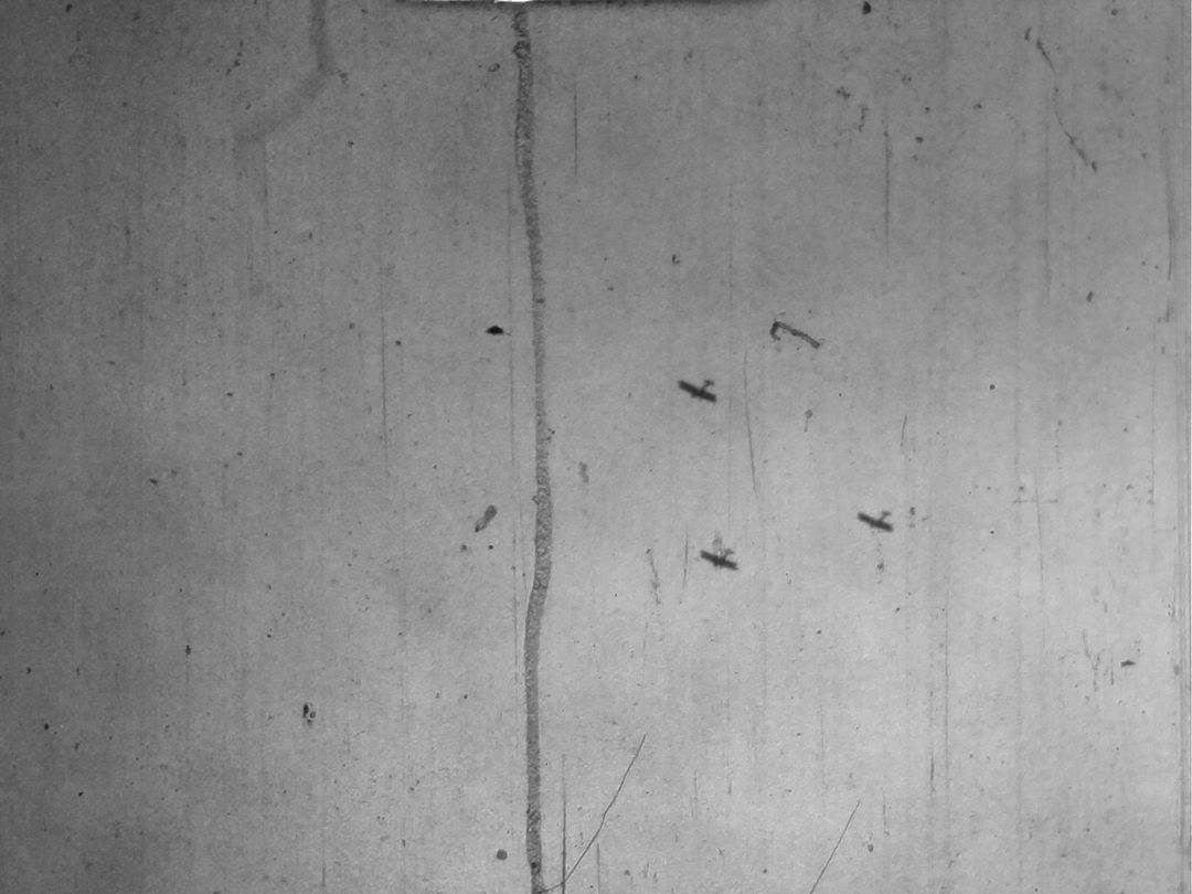 その後空を写した映像がしばらく続きます。フィルムにダメージ(湿度による細かな割れ)が多いのですが、飛行船を先導している複葉機の機影が捉えられていました。