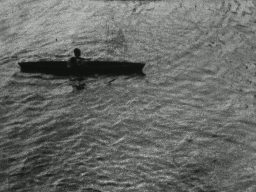 ケーブルカーから山麓を見下ろし、おそらく中間駅(左下)で働いている地元民を捉えた後に動画は船上視点に切り替わり、海岸に密集する集落、船を追走してくるボートを映し出していきます。
