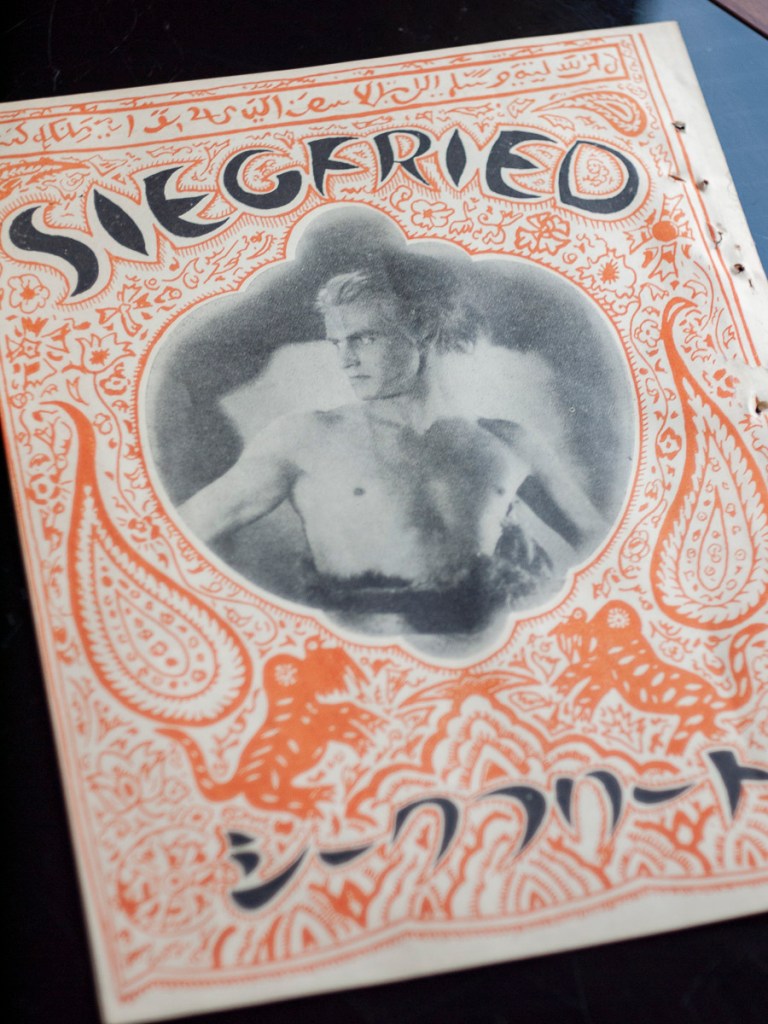 1925年2月、日本で二ーベルンゲン第一部『ジークフリート』が封切りされた際に先行して配布された2色刷りの粗筋・配役紹介。
