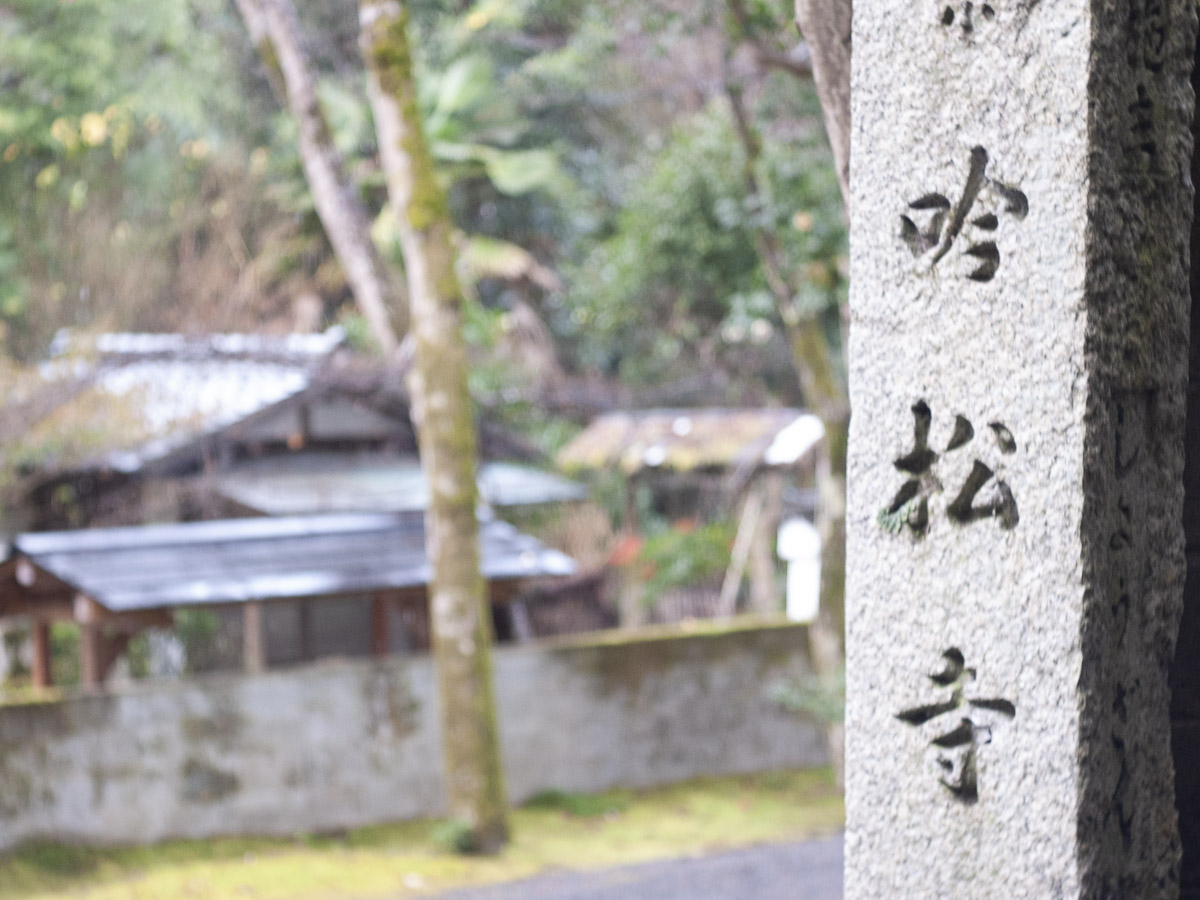 前回は金閣寺脇を抜けて紙屋川沿いを北上するルートを取りました。今年は逆に鷹峯までバスで向かい、そこから南下がてら寄る道順です。源光庵から小学校前を抜け、坂道を下っていくともみじ街道に出ます。道なりに歩いていくと紅葉の落ち葉が散りばめられた石塀の先にお寺の本堂が見えてきます。
