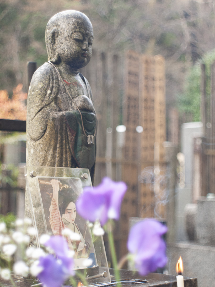 小さな墓地の南東隅に近い一角に柳さく子地蔵が置かれています。この辺りは市街地と比べて1、2度気温が低く、カメラを準備していると雪がちらつき始めました。